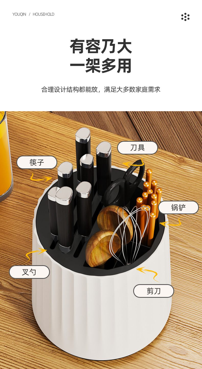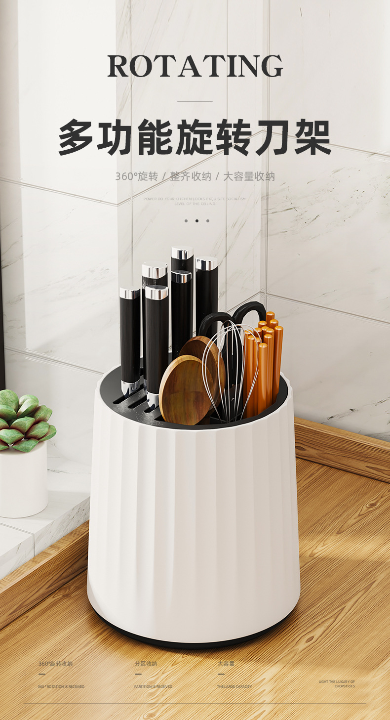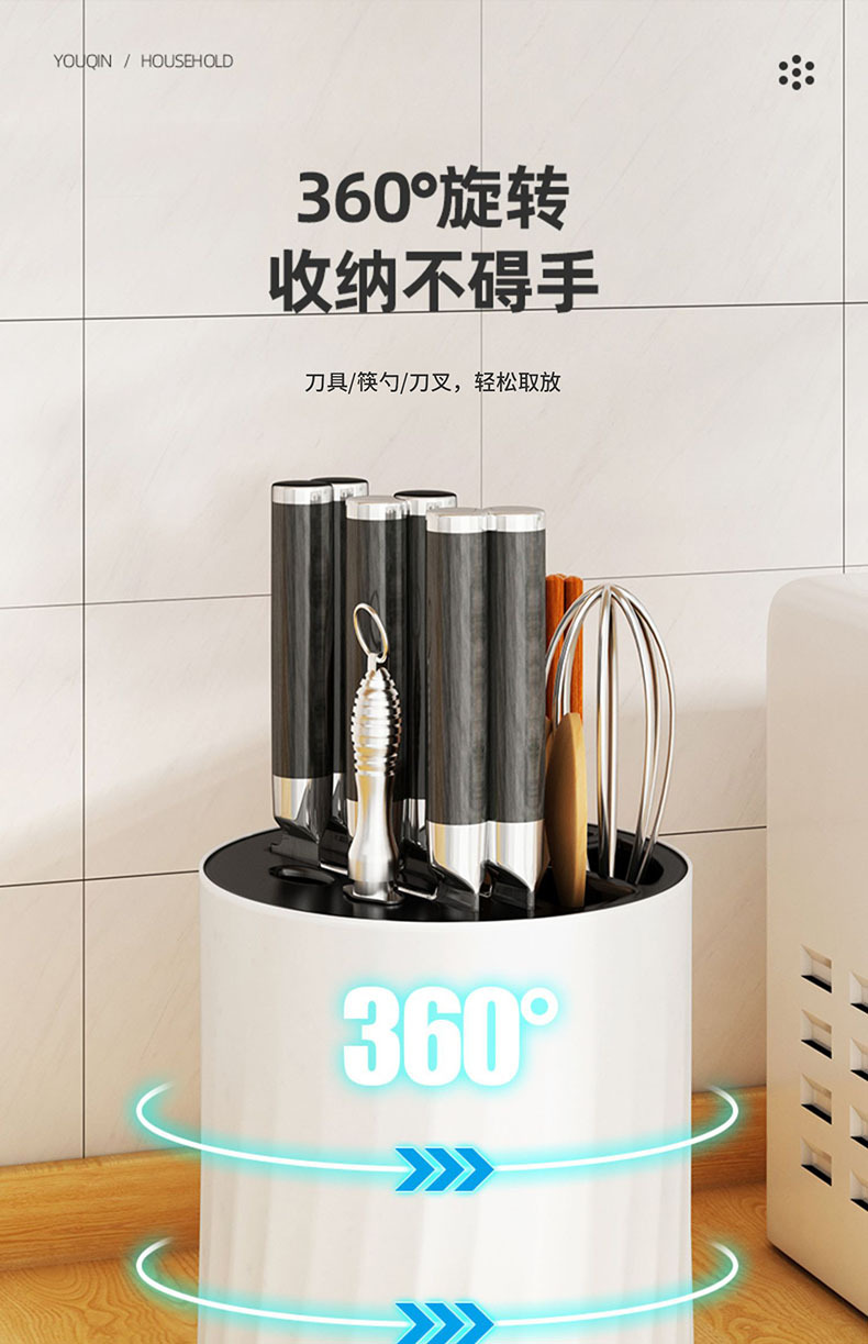 주방 회전 나이프 랙 스토리지 랙 카운터 탑 다기능 젓가락 홀더 나이프 홀더 통합 스토리지 박스 가정용 주방 나이프 랙
