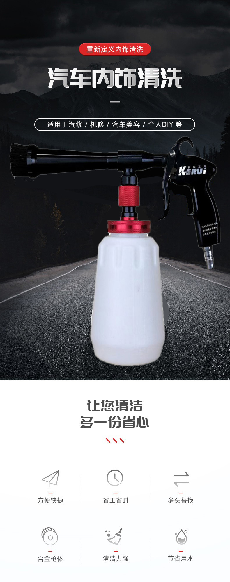 规 格:龙卷风内饰清洗枪 泡沫枪 万向发动机清洗枪 尖嘴枪 顶棚