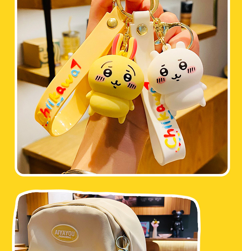 Jiyika 와우 만화 키 체인 한국 스타일 chiikawa 귀여운 인형 커플 책가방 펜던트 키 체인 액세서리스토어 가기
