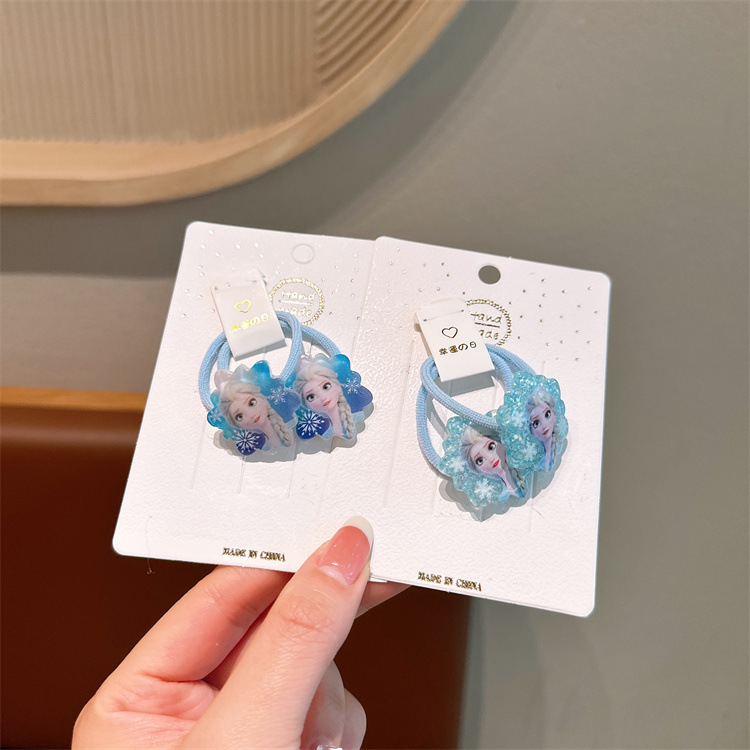어린이 엘사 공주 머리 반지 아기 냉동 머리 밧줄 작은 소녀 엘사 머리띠 고무 끈 머리 밧줄 헤어 액세서리