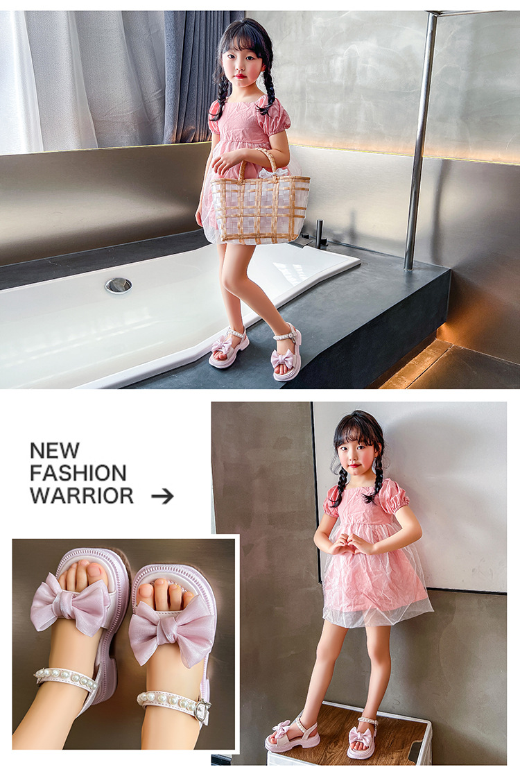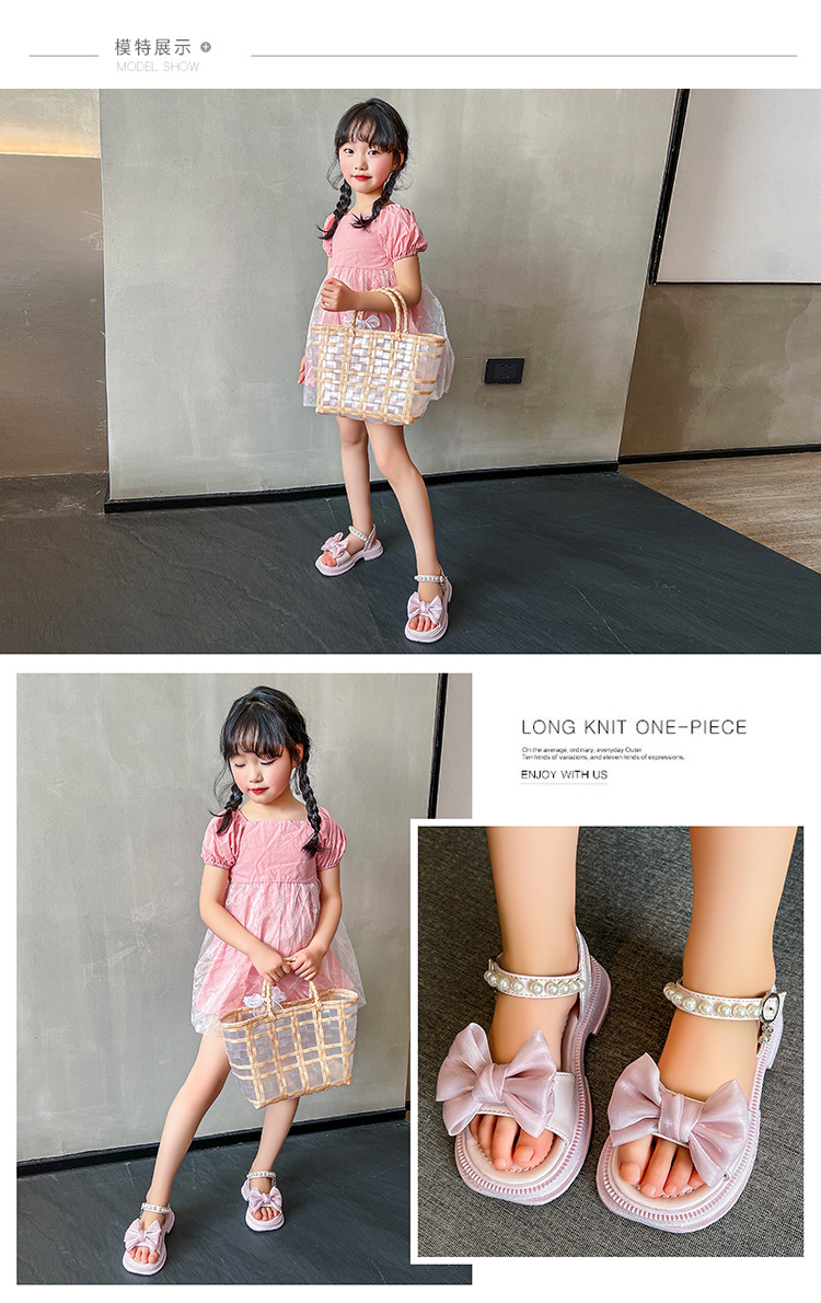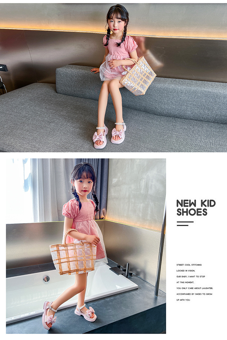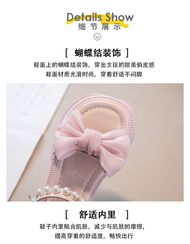 여자 신발 어린이 샌들 여름 2024 새 여름 초등학교 어린이 정품 가죽 소프트 솔 걸스 공주 신발스토어 가기