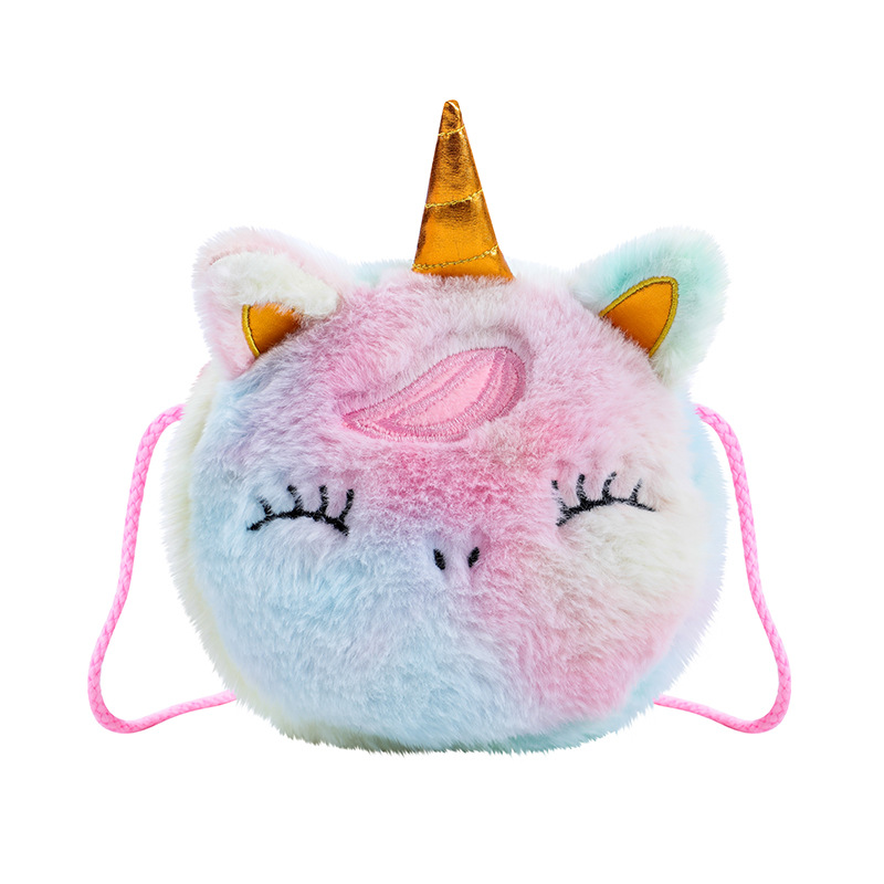 새로운 스팟 크로스 바디 가방 유치원 작은 공주 동전 지갑 유니콘 만화 봉제 어깨 가방 아이들 귀여운스토어 가기