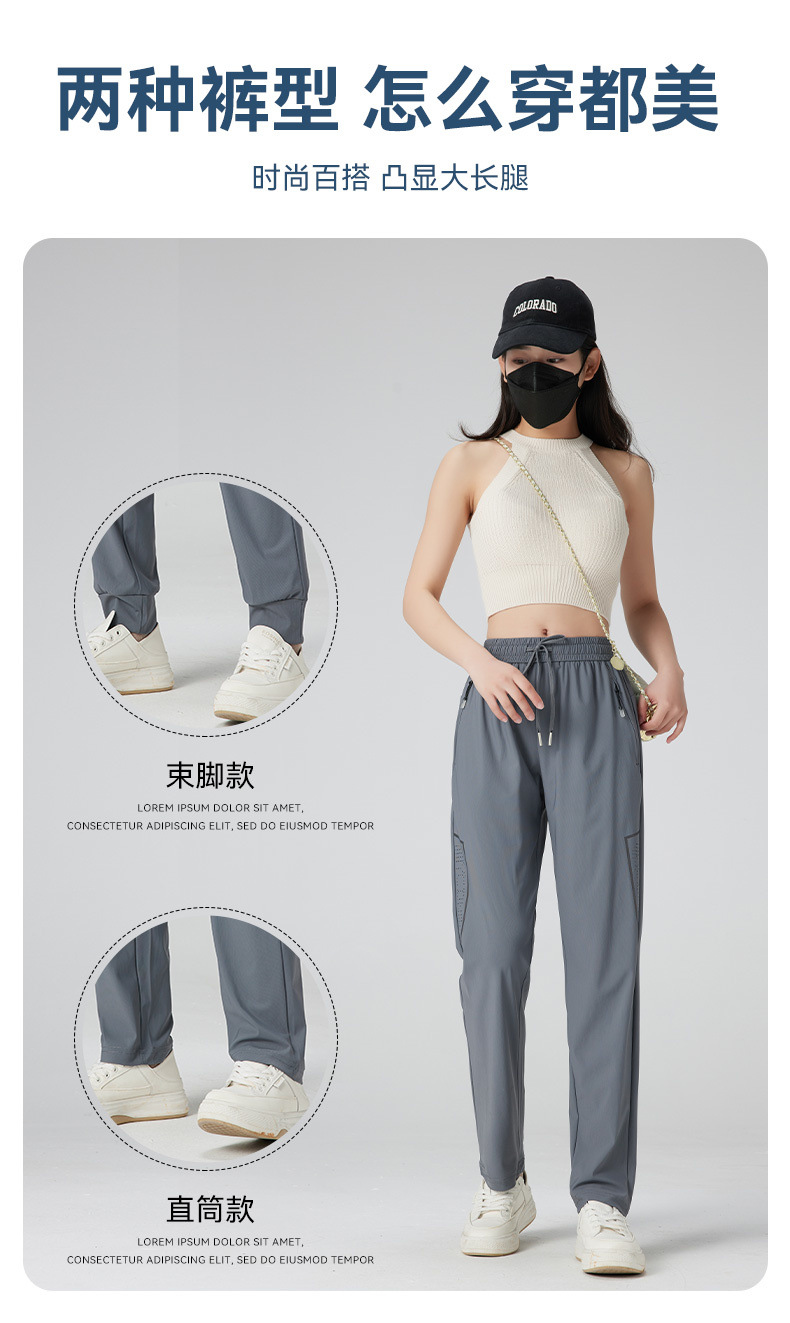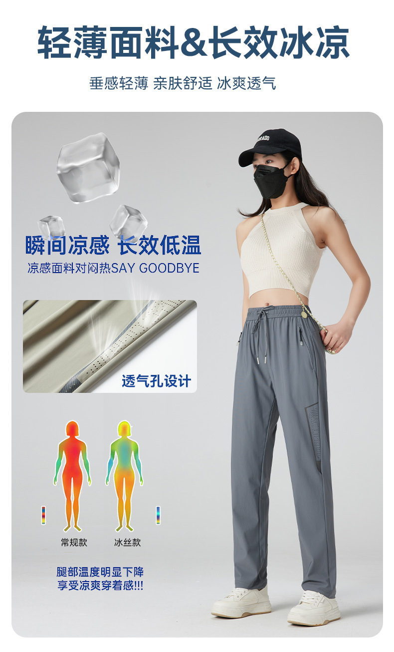 남성용 아이스 실크 팬츠, 여름용 얇은 속건 스포츠 팬츠, 여성용 스트레이트 레그 캐주얼 팬츠, 플러스 사이즈 쿨링 레깅스 팬츠스토어 가기