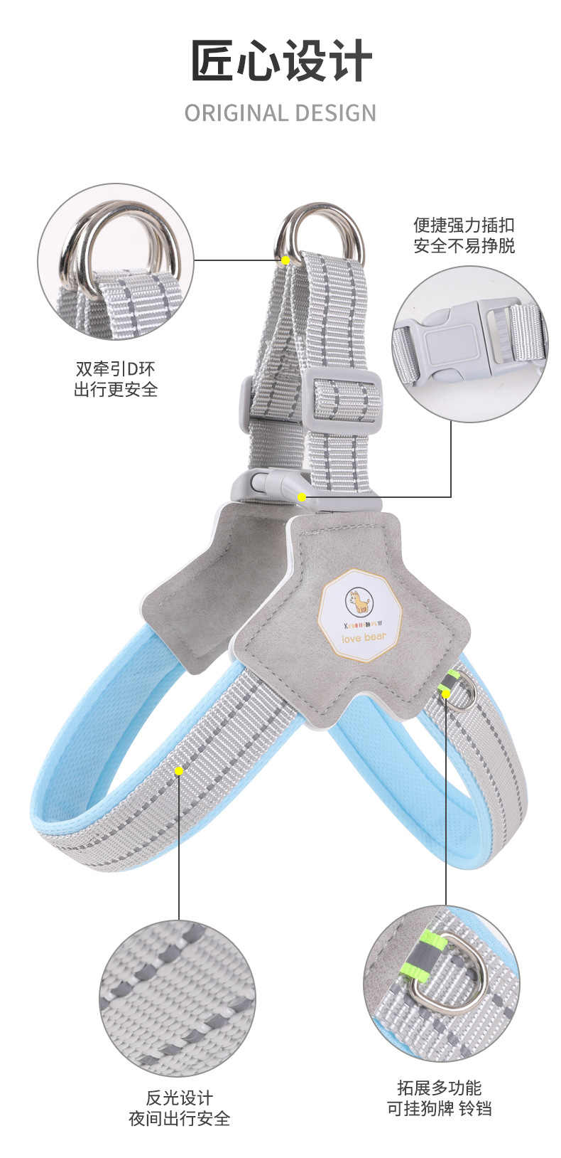 새로운 개 가슴 스트랩 통기성 애완 동물 견인 로프 안장 개 로프 애완 동물 용품 도매