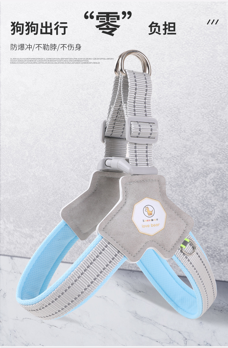 새로운 개 가슴 스트랩 통기성 애완 동물 견인 로프 안장 개 로프 애완 동물 용품 도매스토어 가기