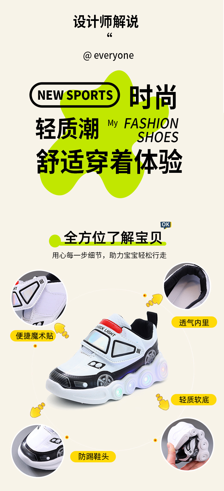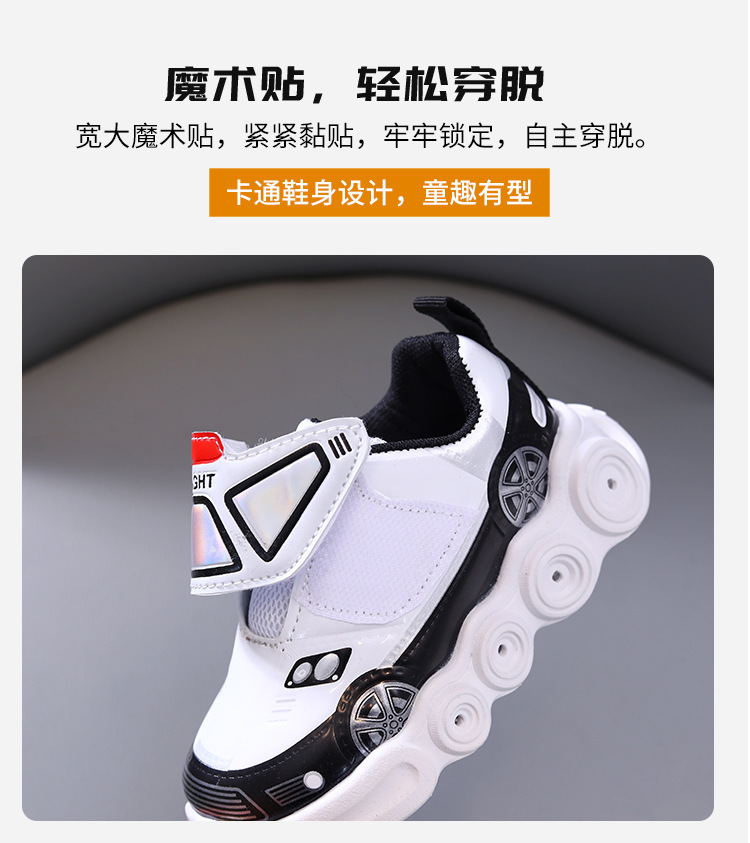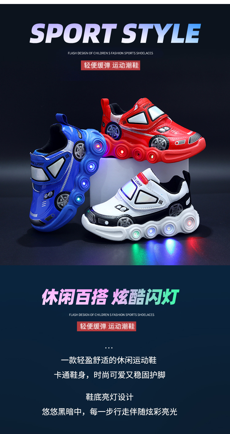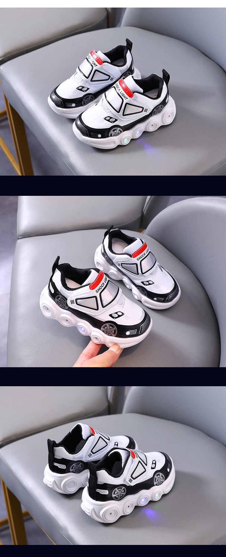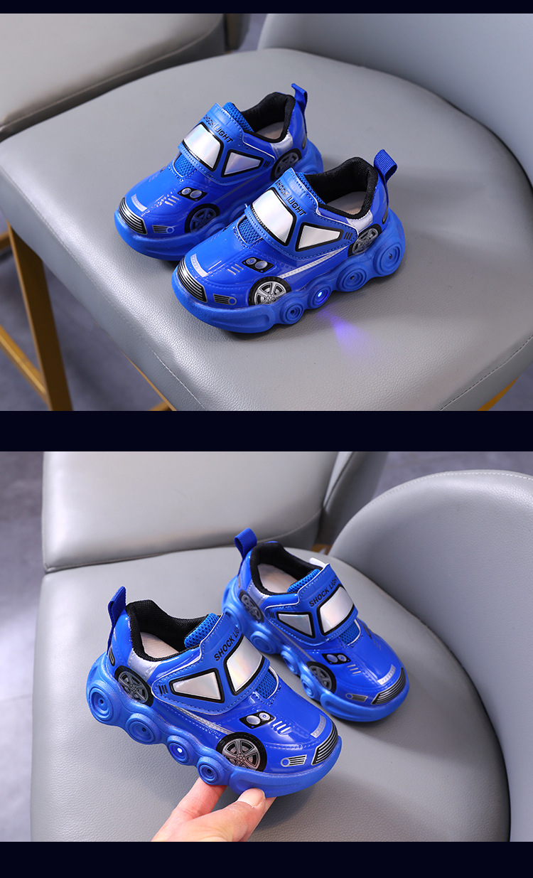 봄과 가을 새로운 어린이 스포츠 신발 가죽 자동차 LED 빛나는 어린이 신발 1-6 세 소년 스포츠 및 캐주얼 신발스토어 가기
