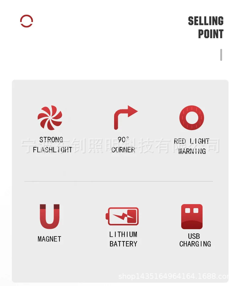 长按开关可以在任意档关闭灯光。尾部强磁。