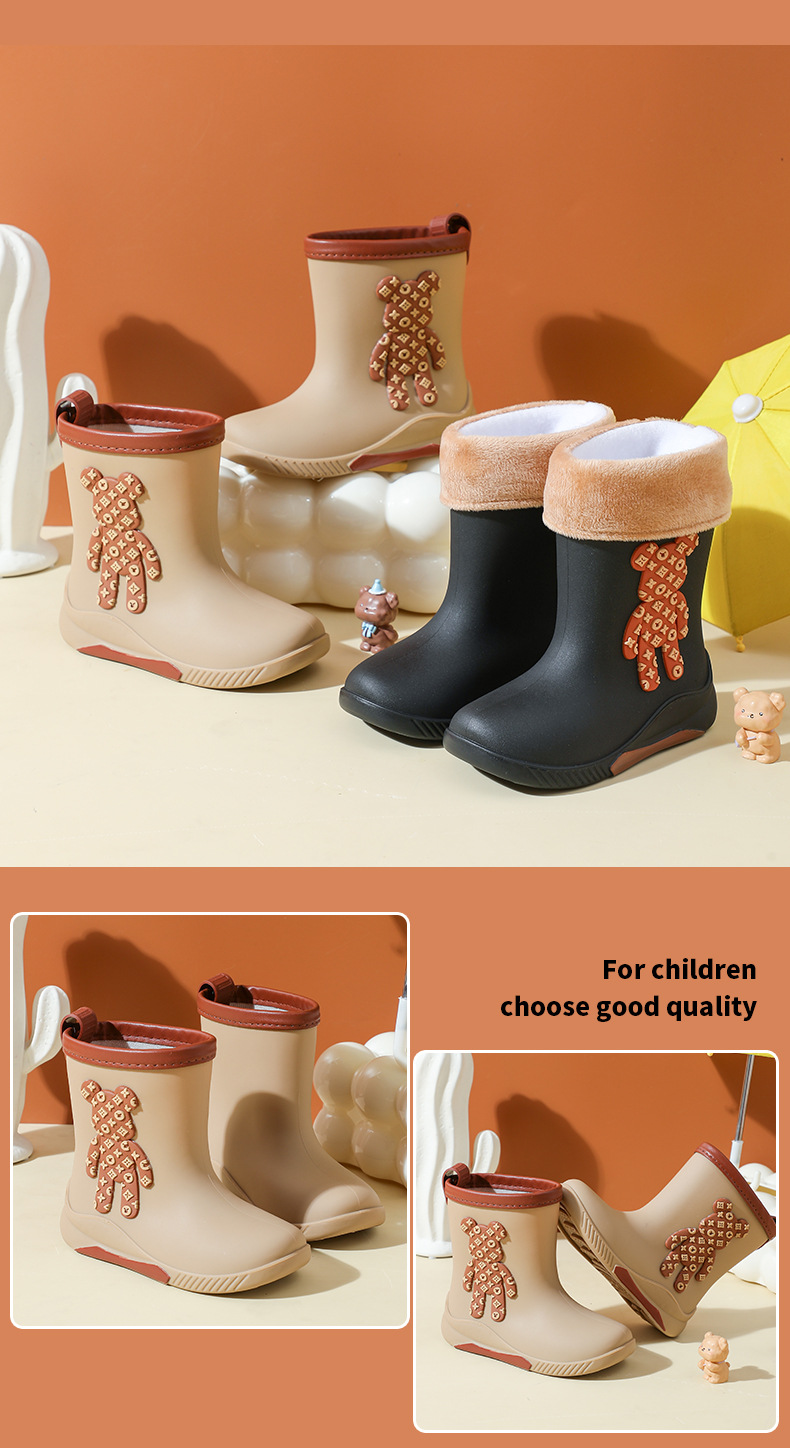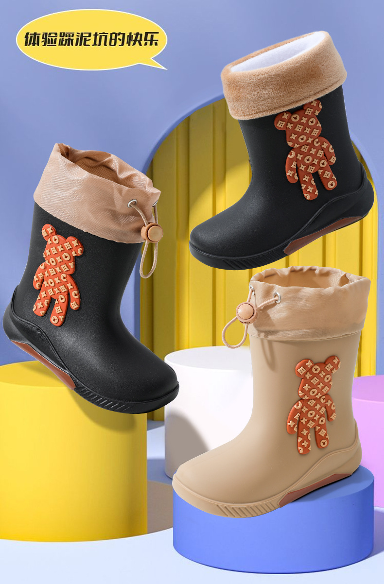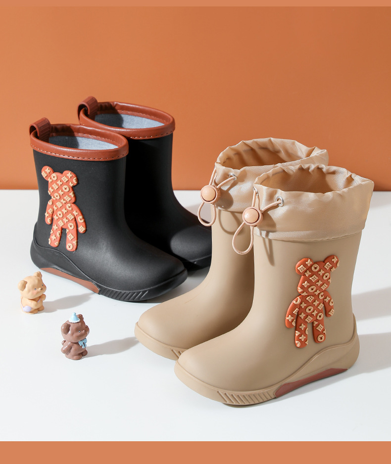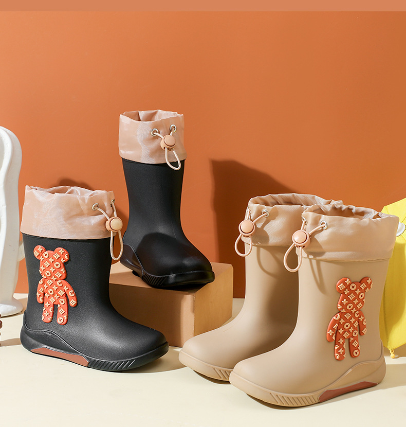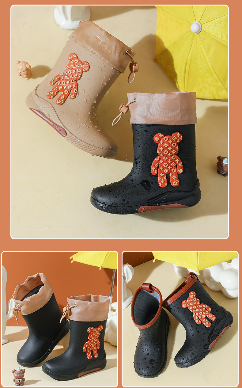 소년 소녀를위한 어린이 장화 어린이 장화 소형, 중형 및 대형 어린이 만화 곰 신식 물 신발 경량 비 슬립 방수 신발