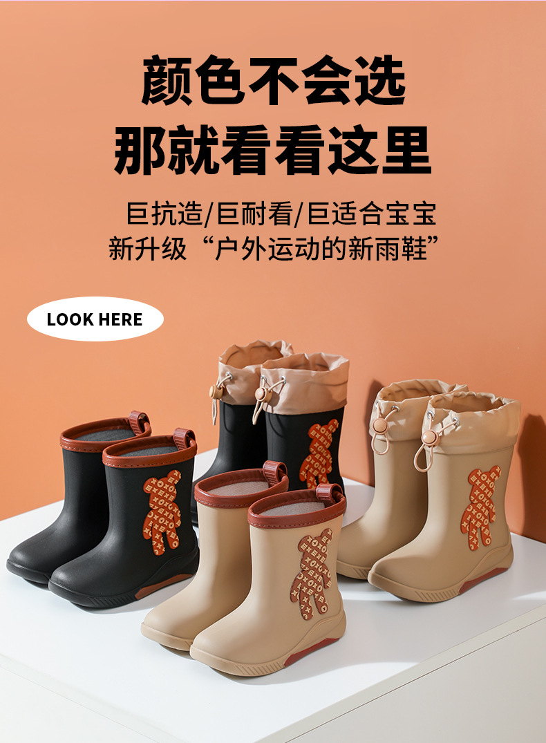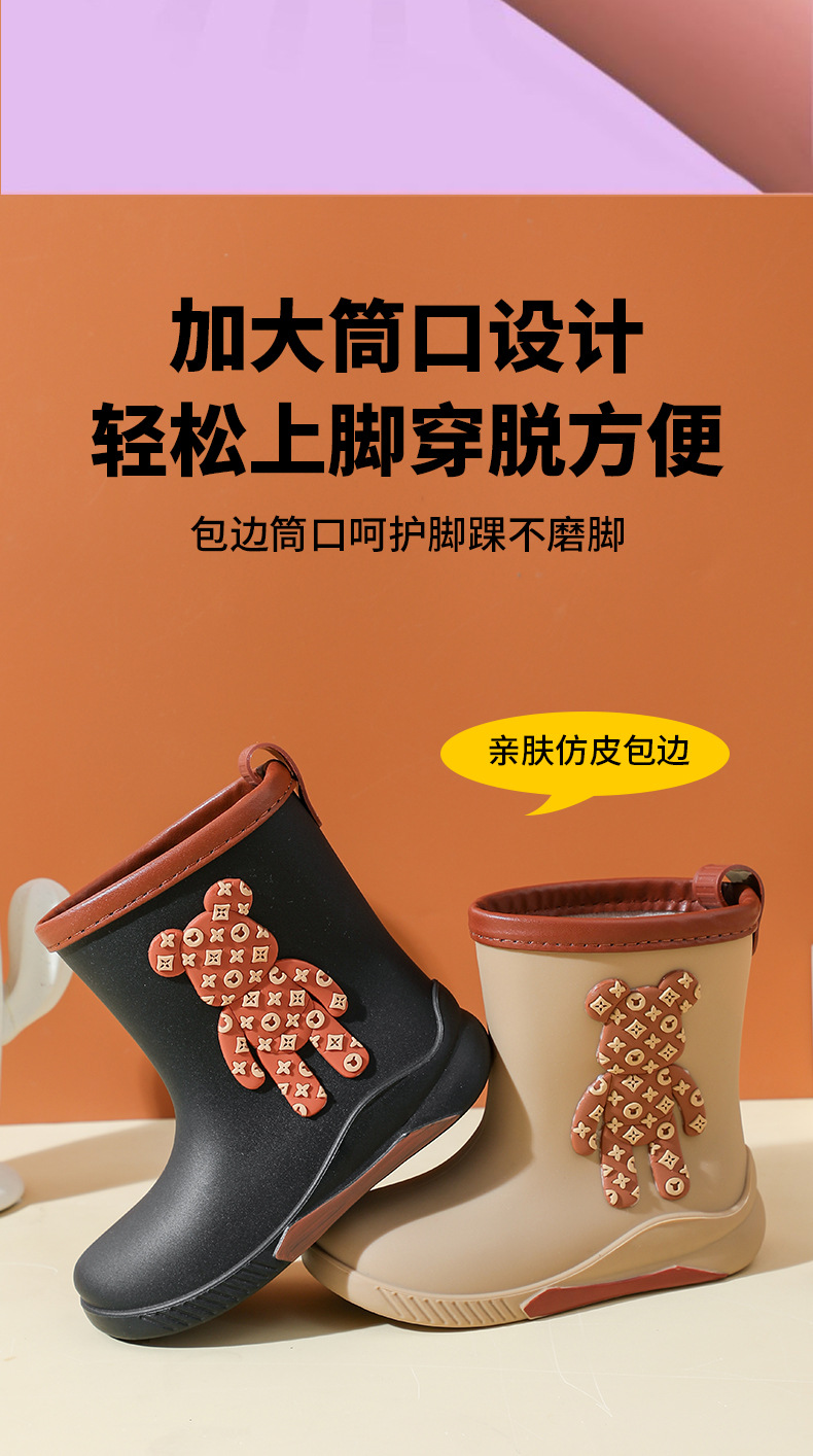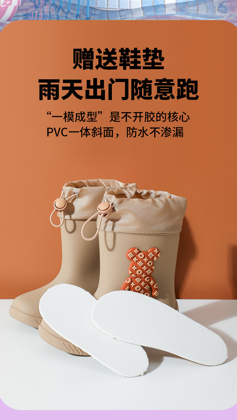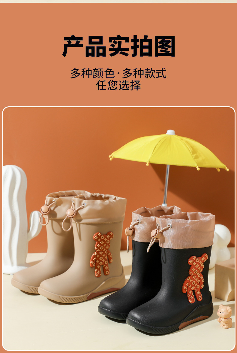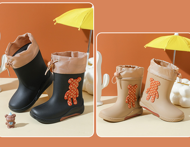 소년 소녀를위한 어린이 장화 어린이 장화 소형, 중형 및 대형 어린이 만화 곰 신식 물 신발 경량 비 슬립 방수 신발