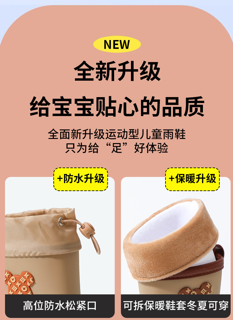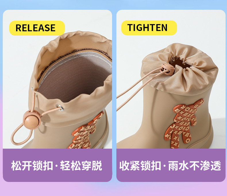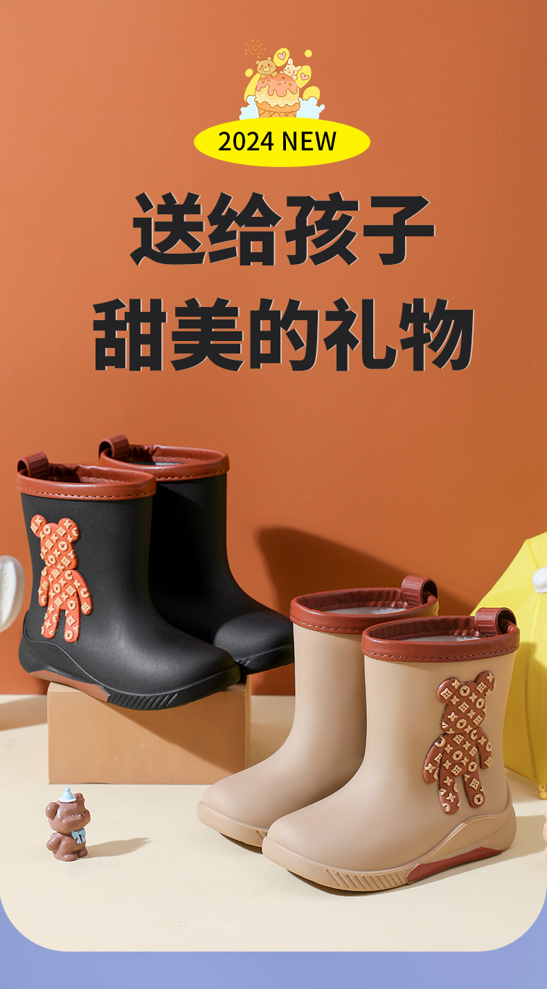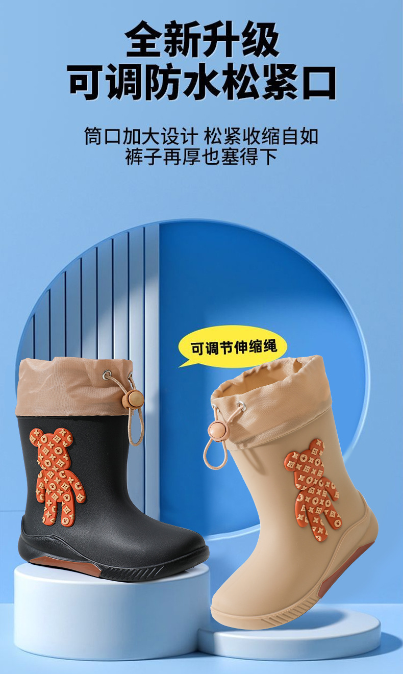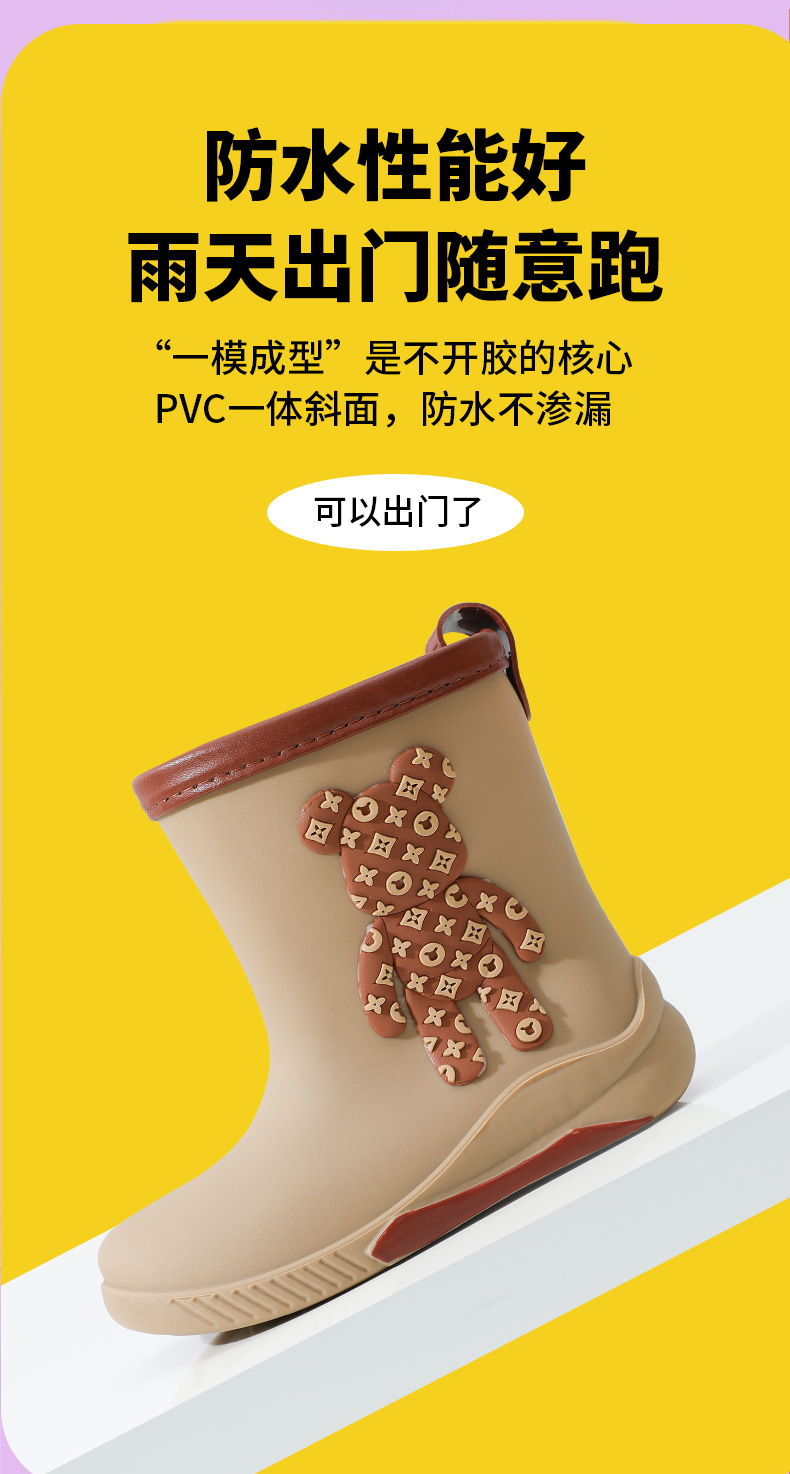 소년 소녀를위한 어린이 장화 어린이 장화 소형, 중형 및 대형 어린이 만화 곰 신식 물 신발 경량 비 슬립 방수 신발