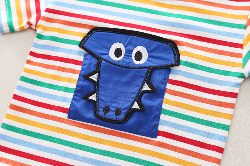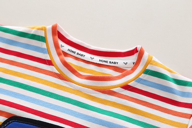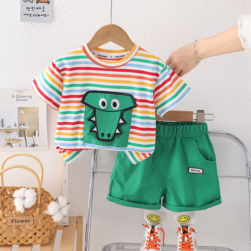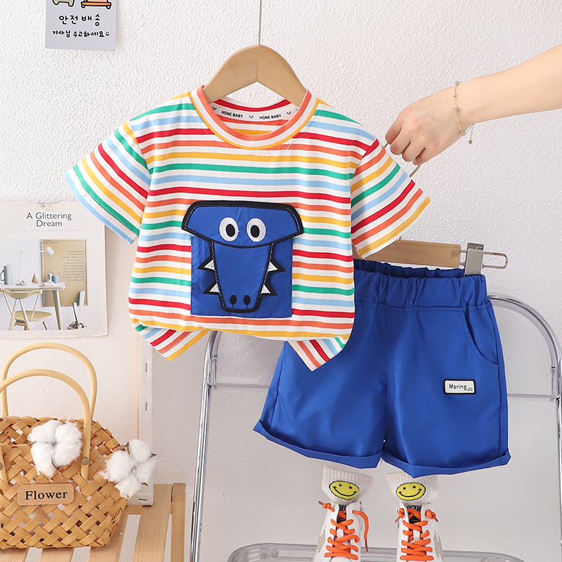 대외 무역 아동복 여름 한국 소년 소녀 짧은 소매 줄무늬 세트 둥근 목 소년 여름 투피스 도매스토어 가기