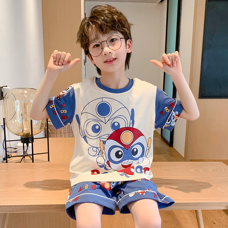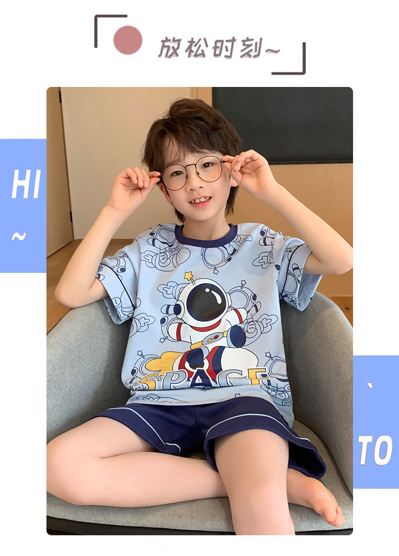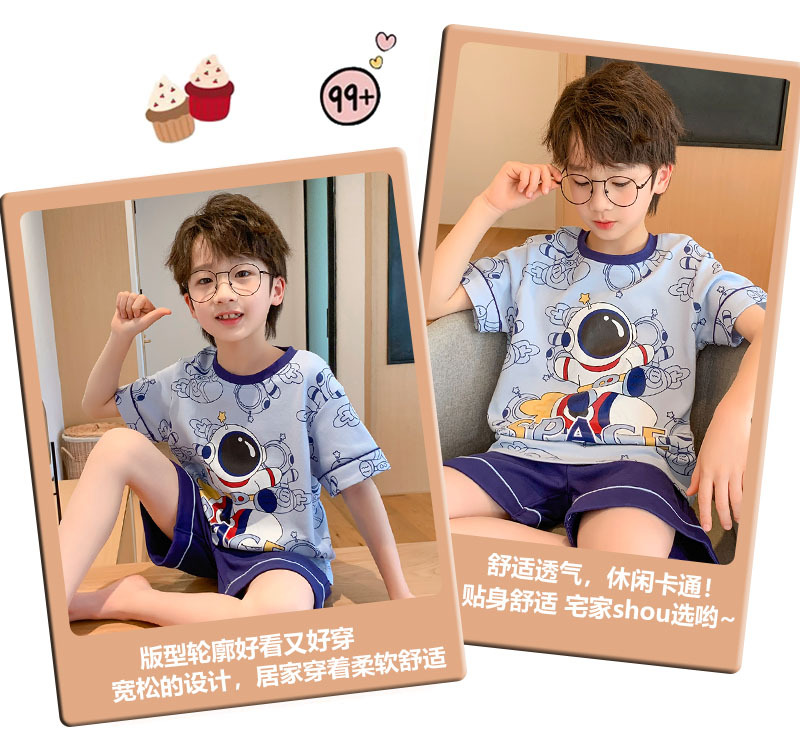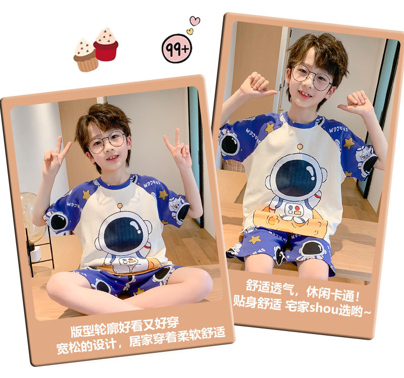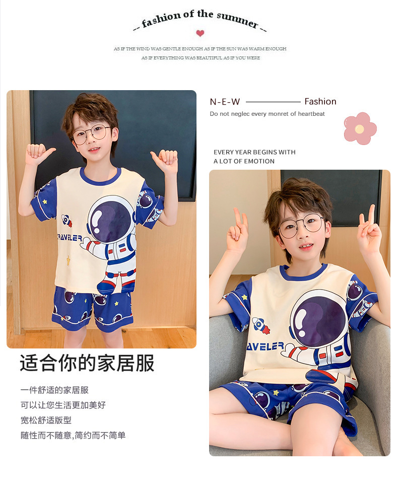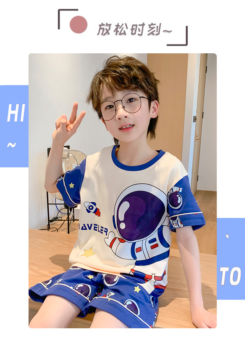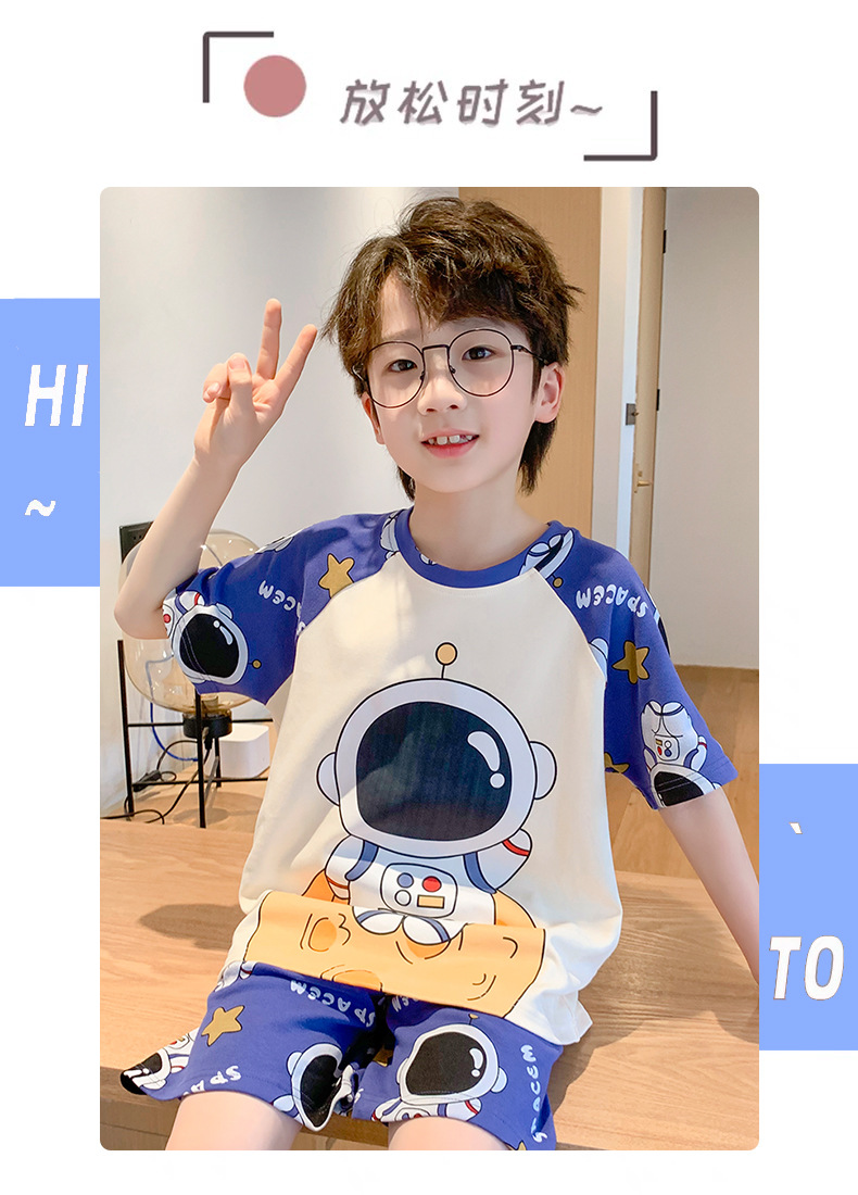 여름 어린이 잠옷 소년의 순면 반팔 얇은 우주 비행사 소년 아기 만화 소녀의 집 옷 세트