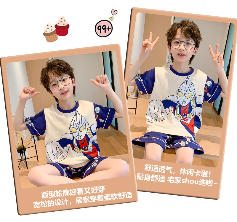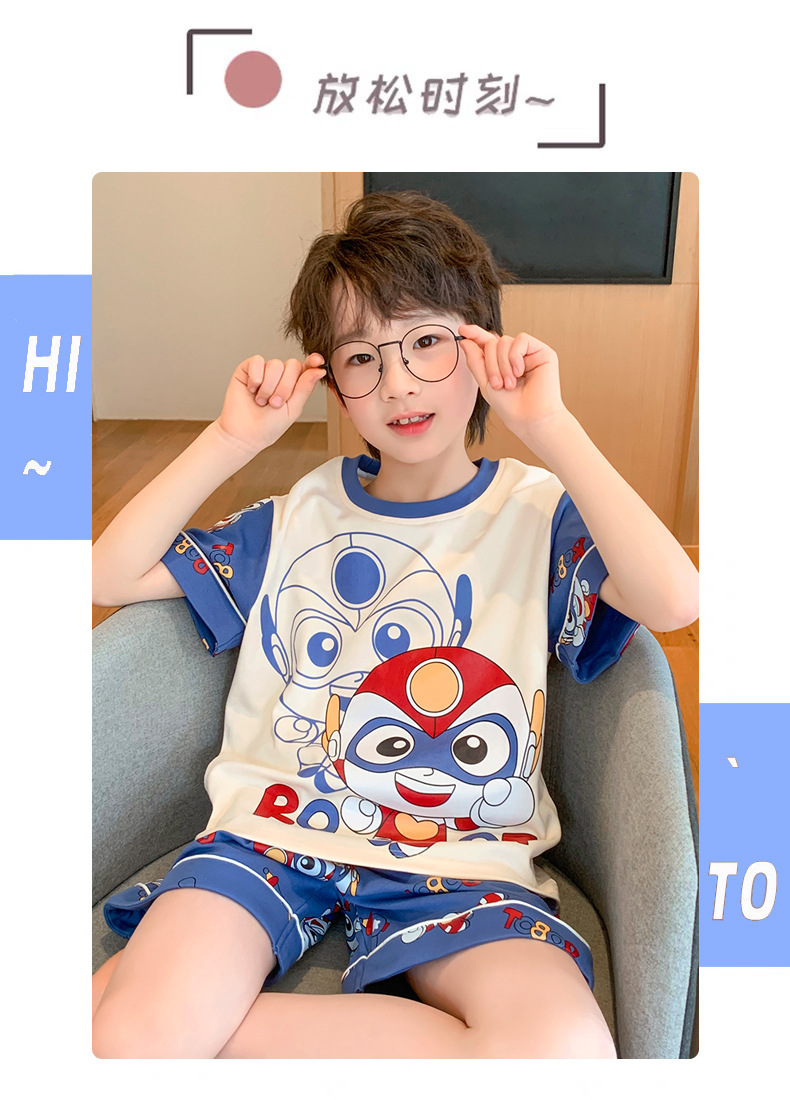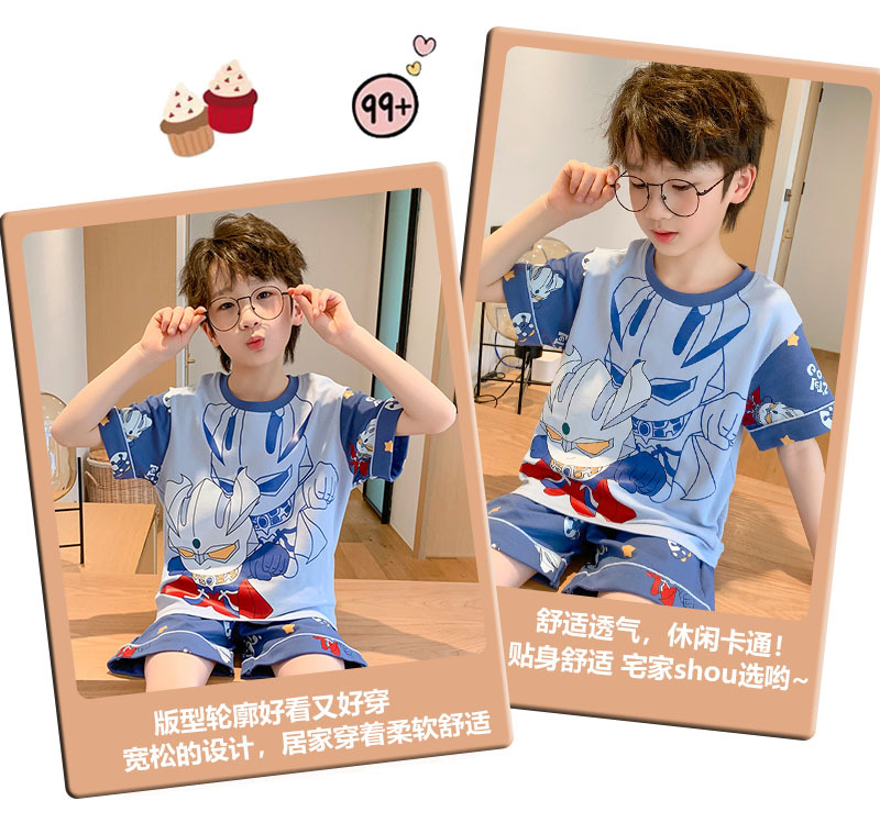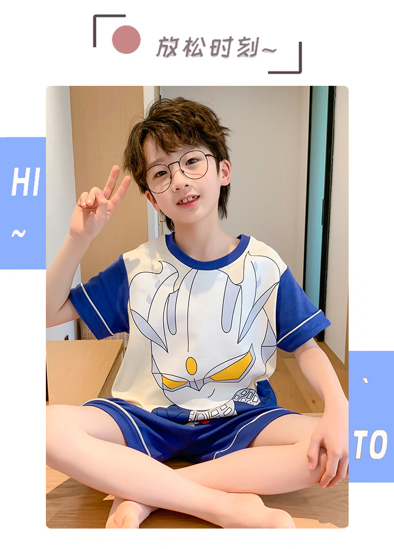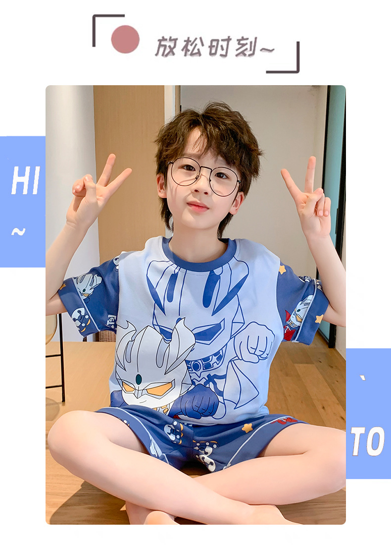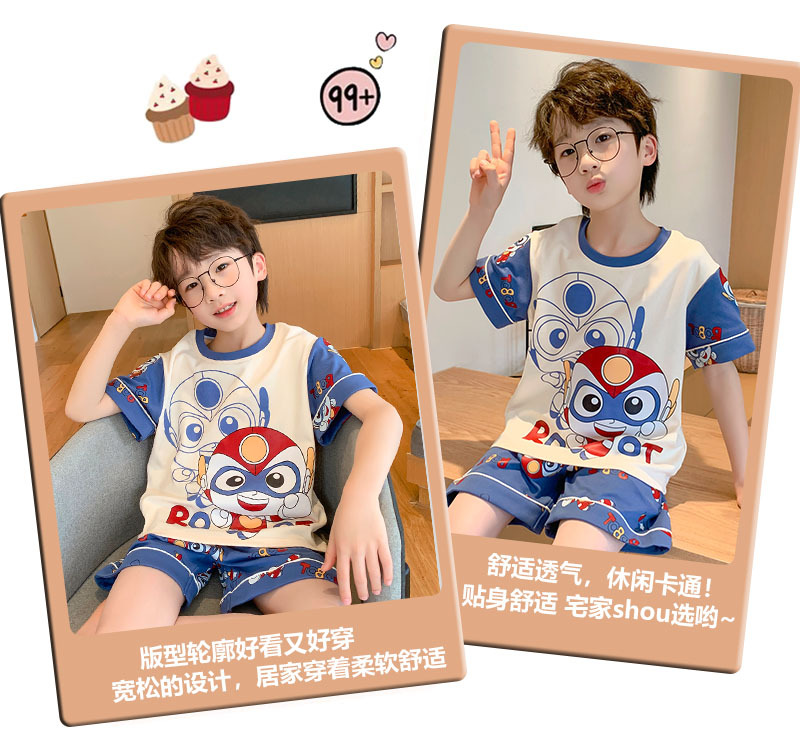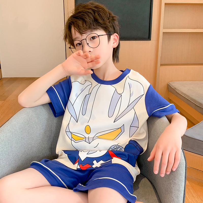 여름 어린이 잠옷 소년의 순면 반팔 얇은 우주 비행사 소년 아기 만화 소녀의 집 옷 세트