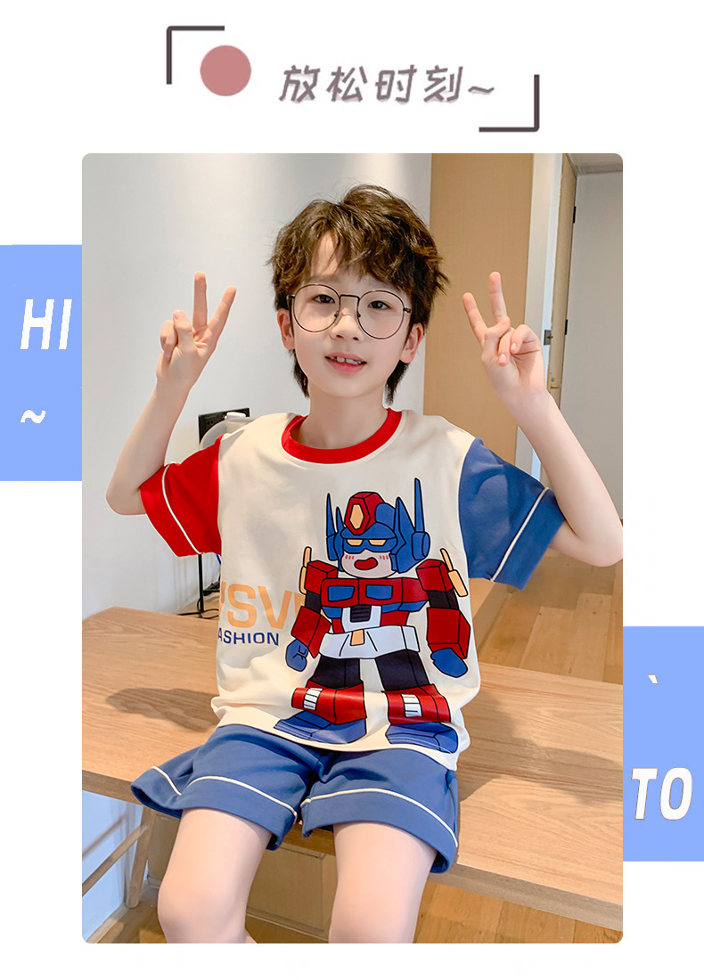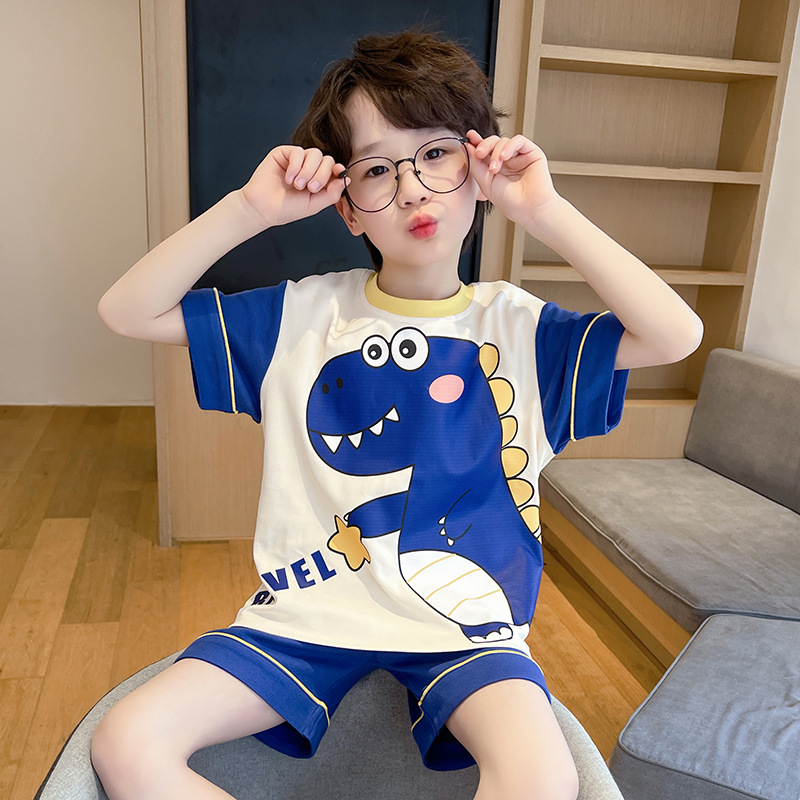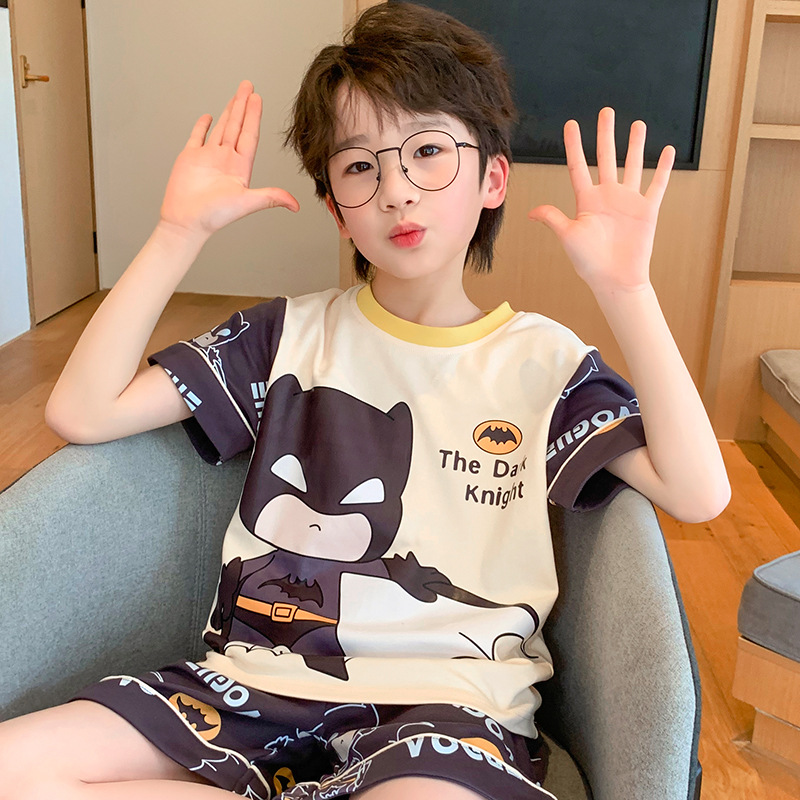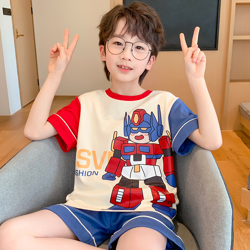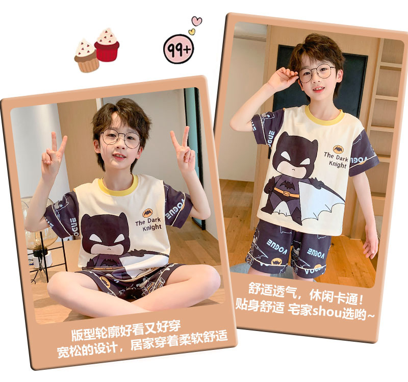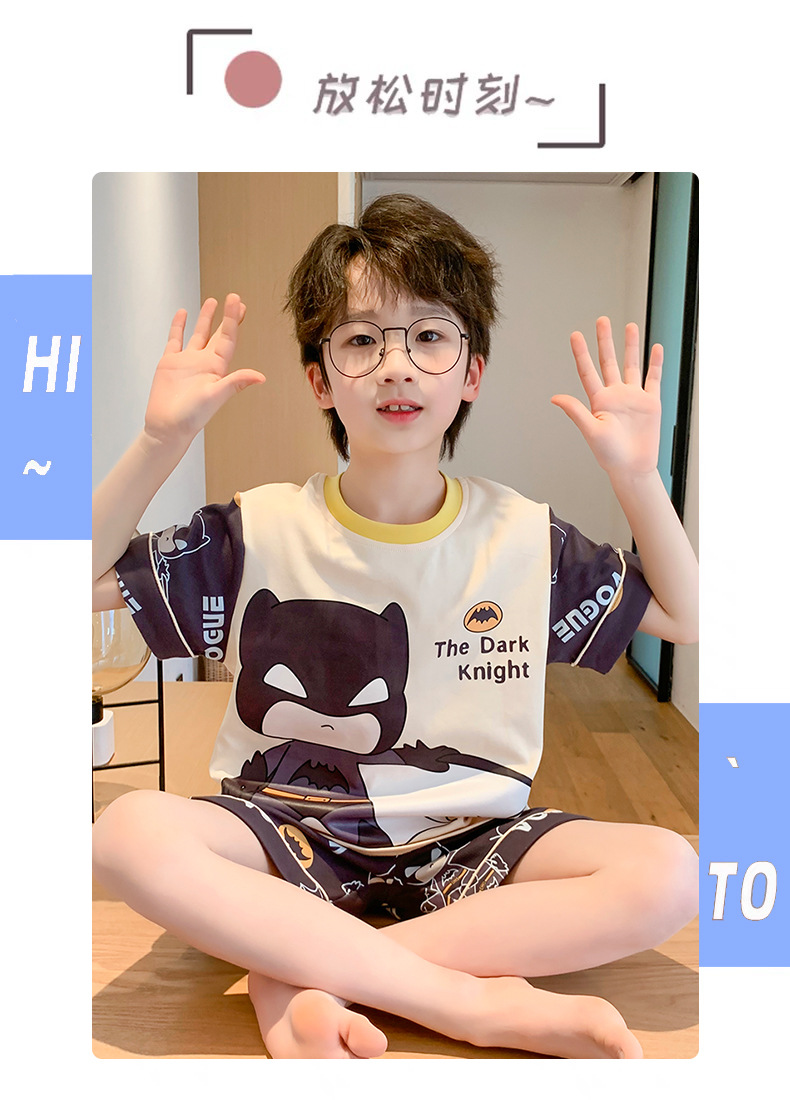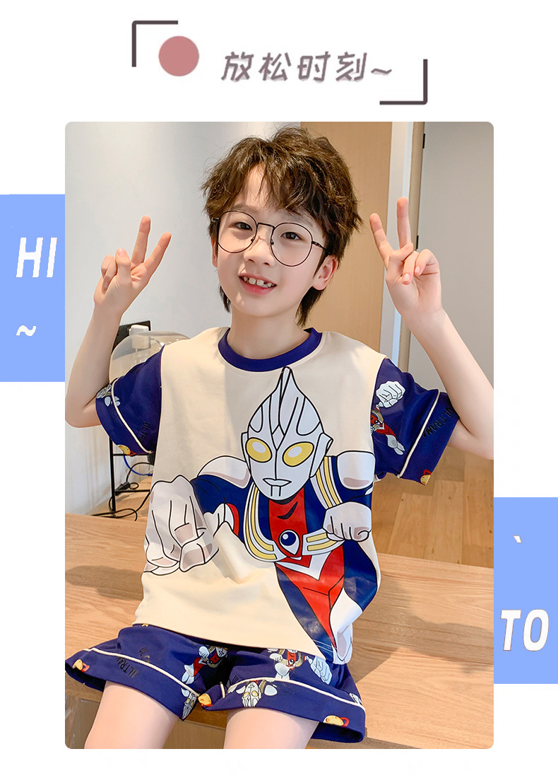 여름 어린이 잠옷 소년의 순면 반팔 얇은 우주 비행사 소년 아기 만화 소녀의 집 옷 세트