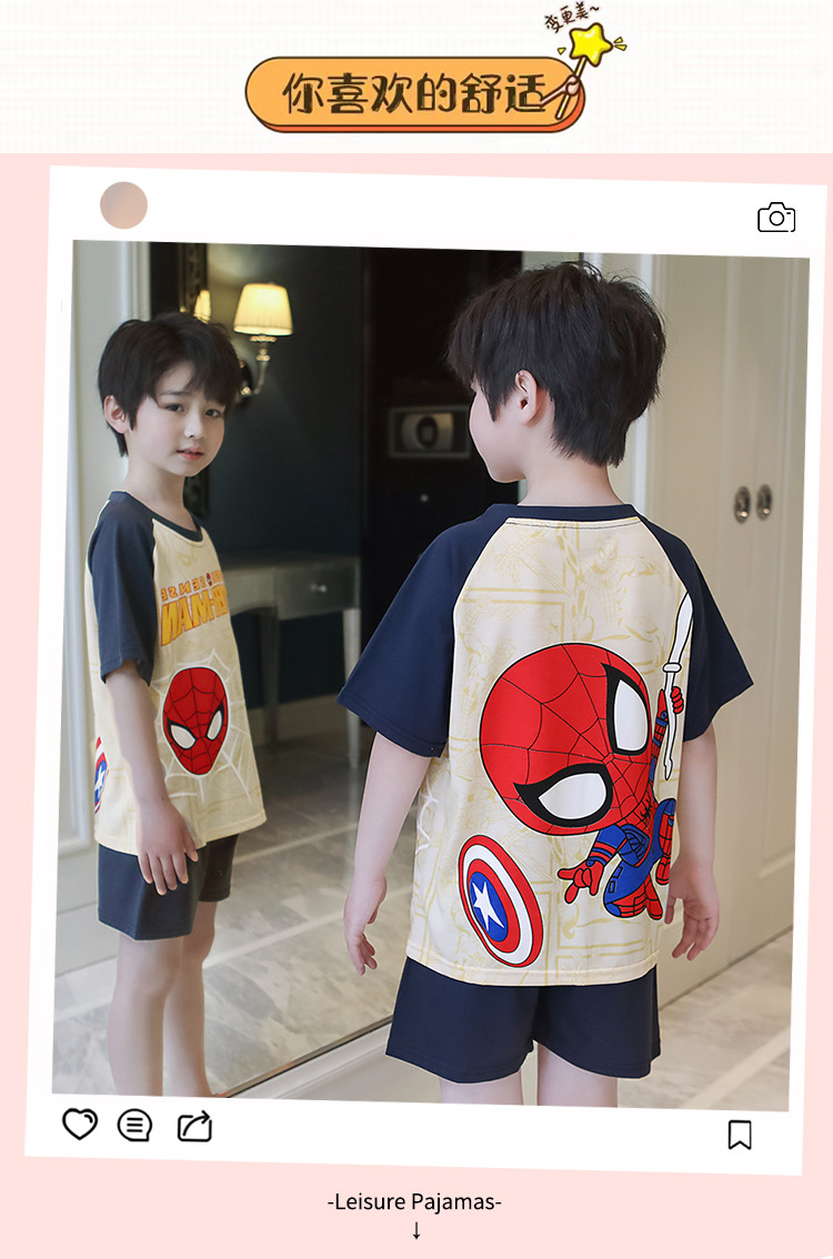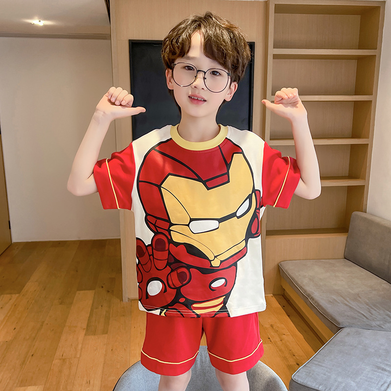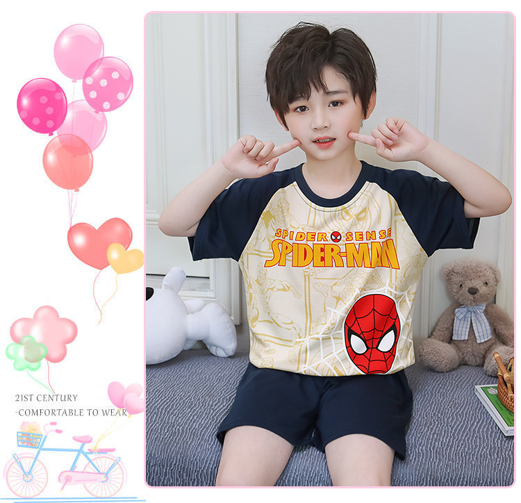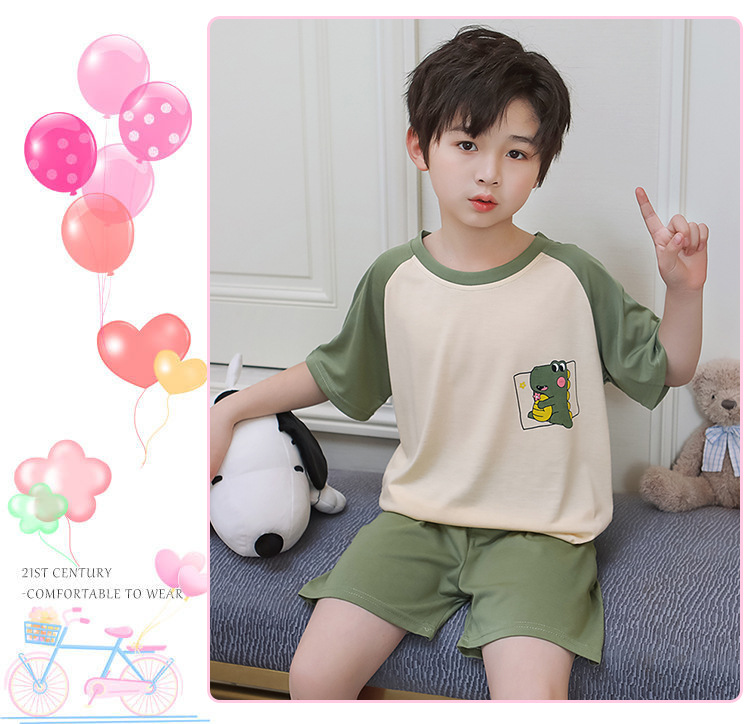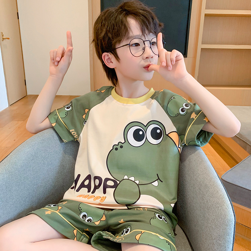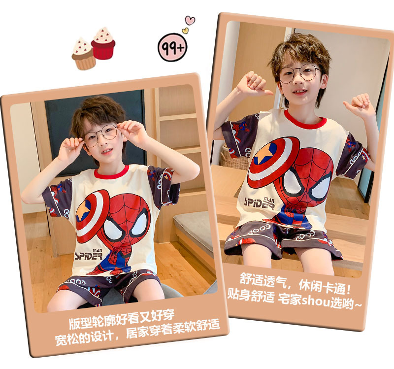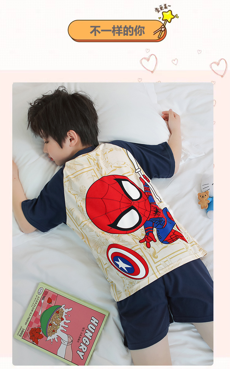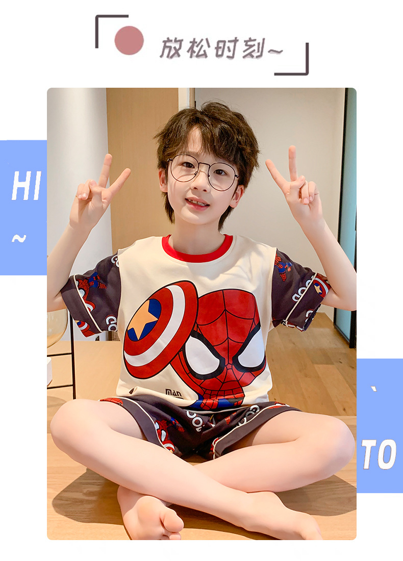 여름 어린이 잠옷 소년의 순면 반팔 얇은 우주 비행사 소년 아기 만화 소녀의 집 옷 세트