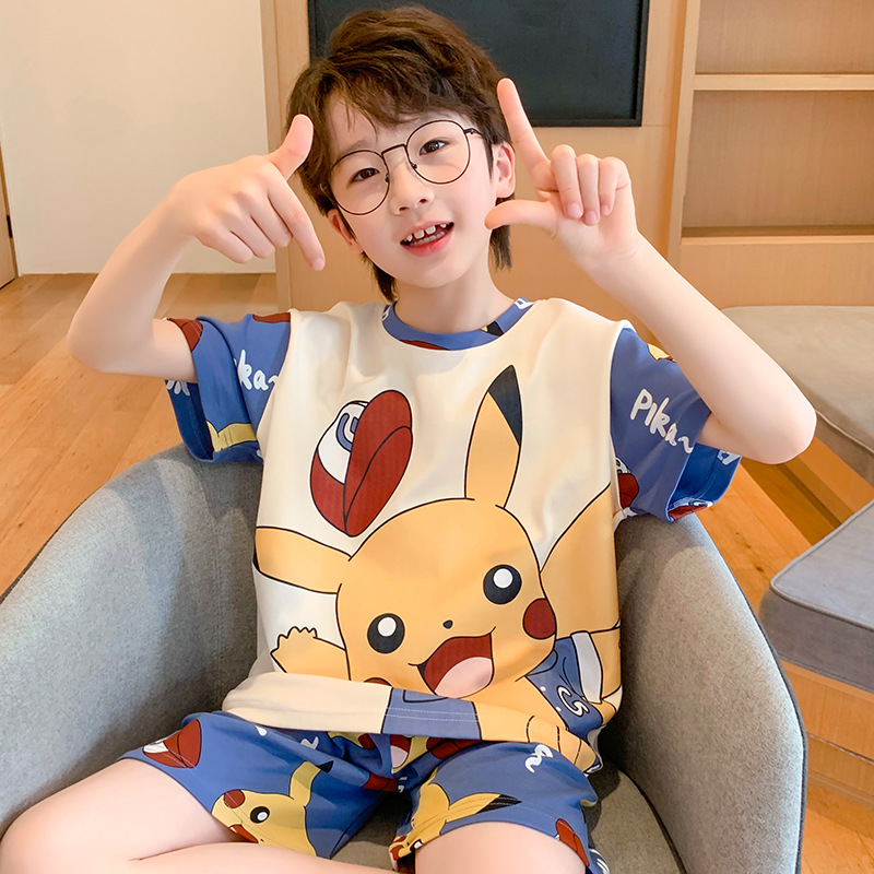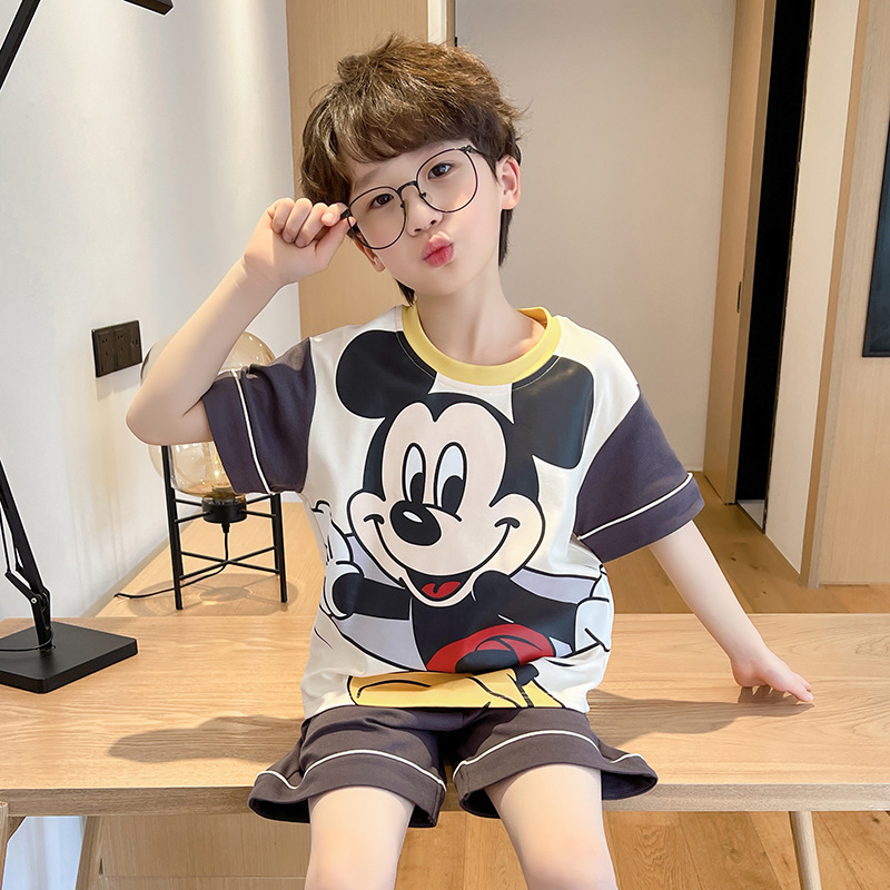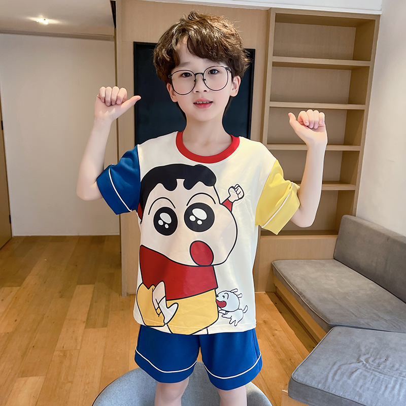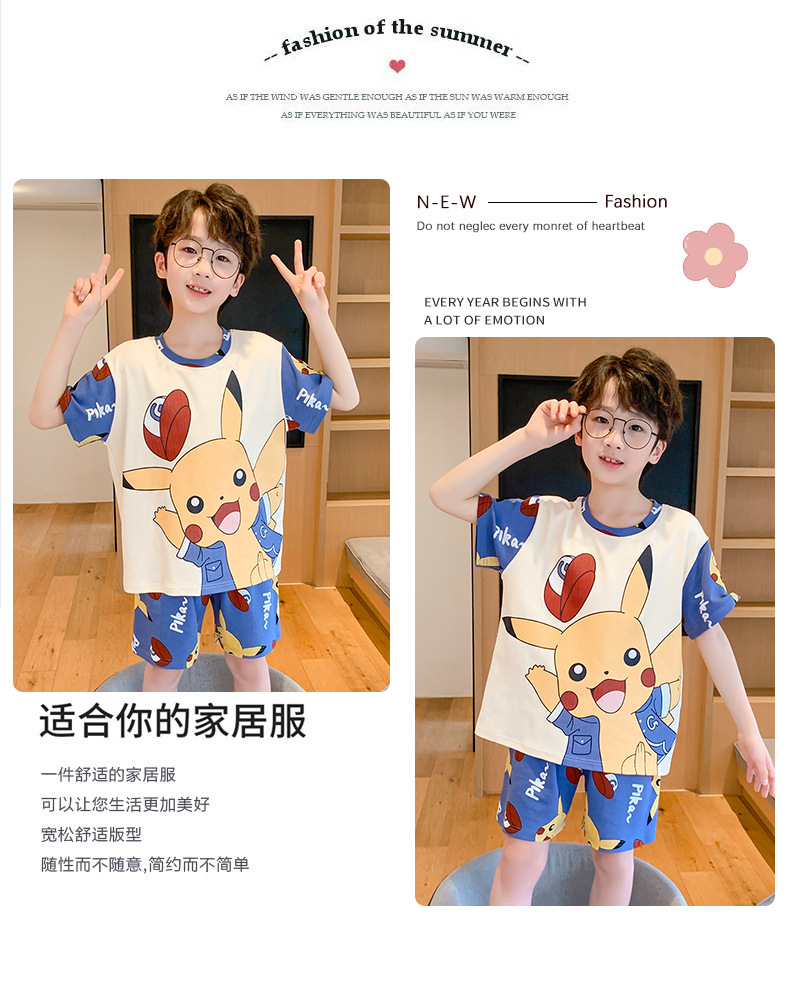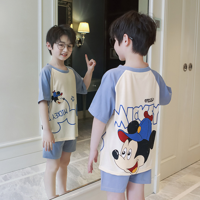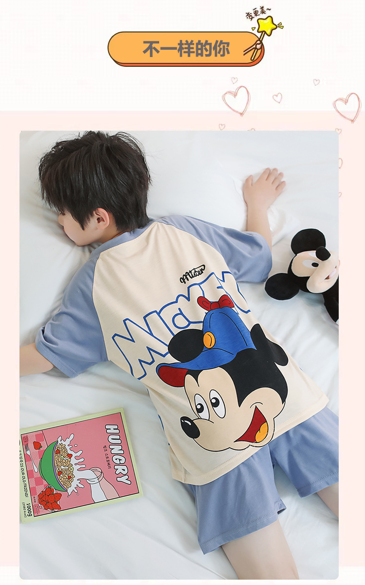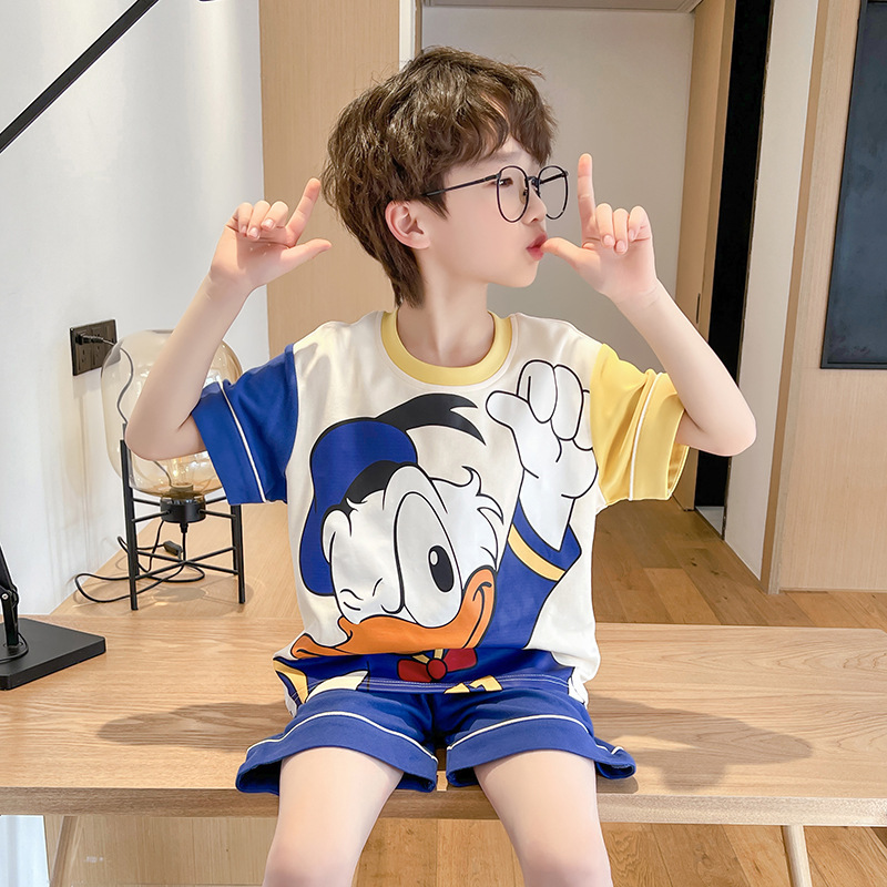 여름 어린이 잠옷 소년의 순면 반팔 얇은 우주 비행사 소년 아기 만화 소녀의 집 옷 세트