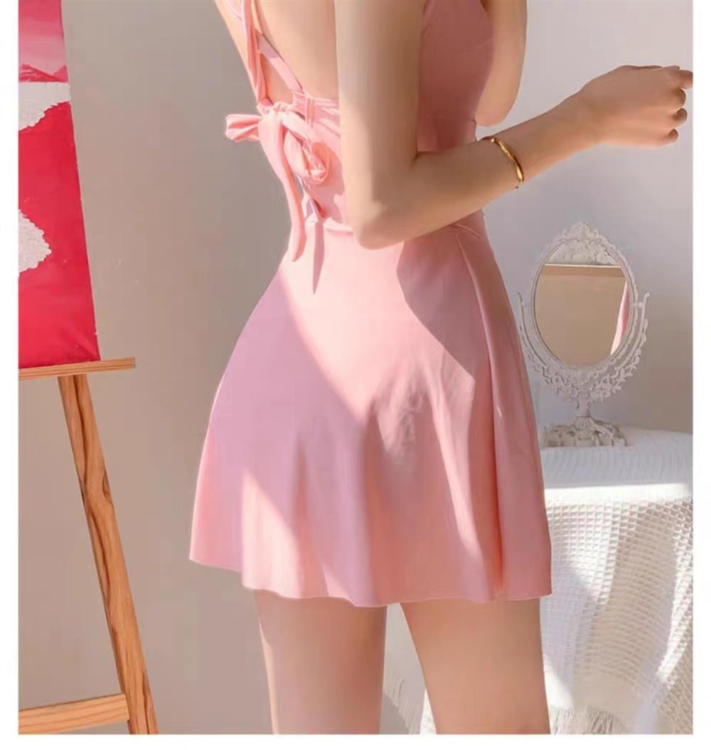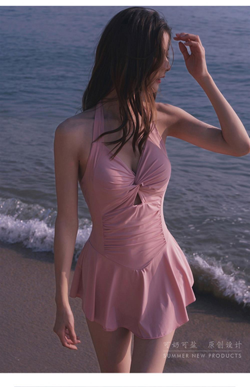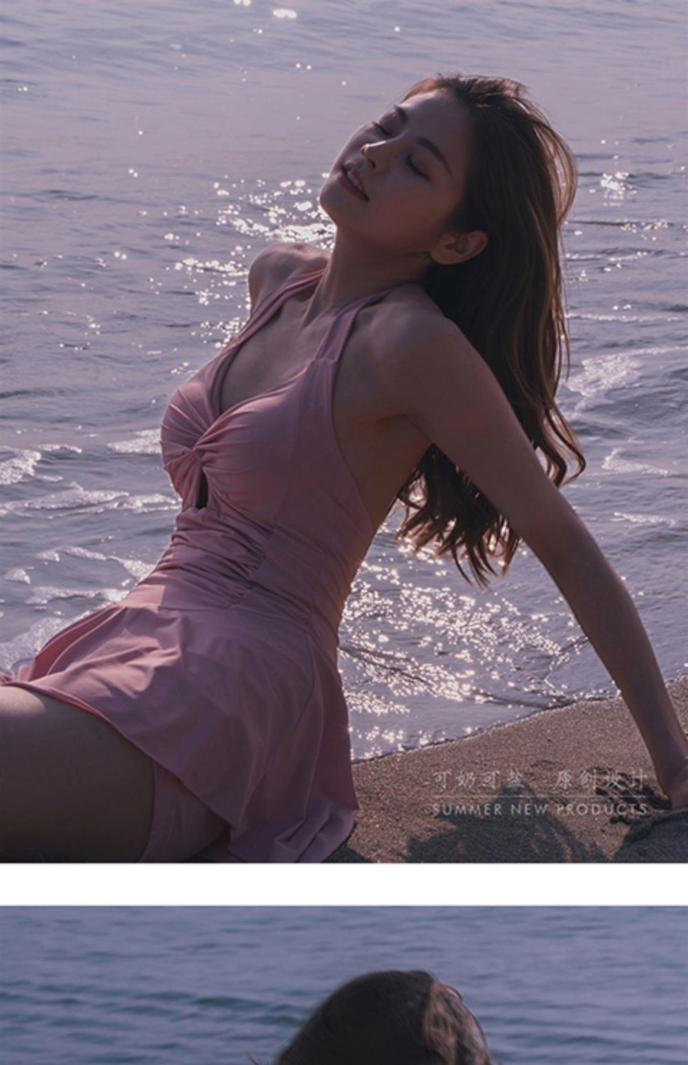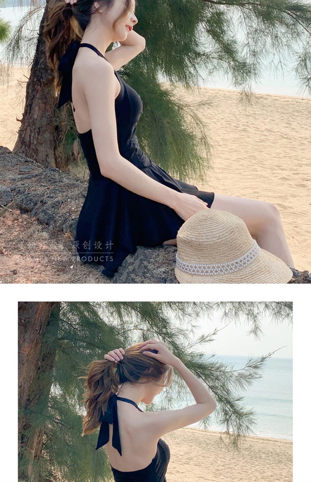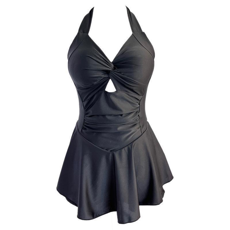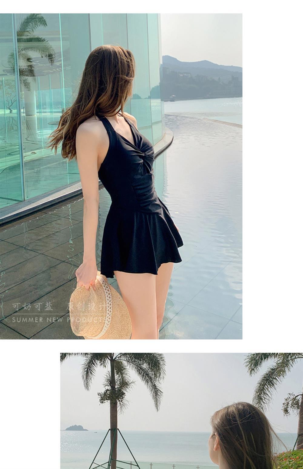 국경 간 도매 수영복 여성 온라인 유명 인사 슬림 배꼽 보수적 인 블랙 플랫 코너 목에 걸려있는 온천 수영복