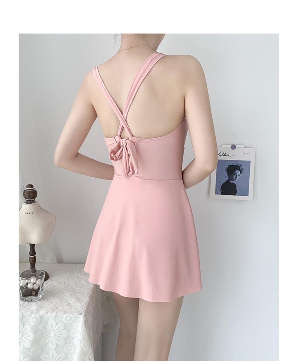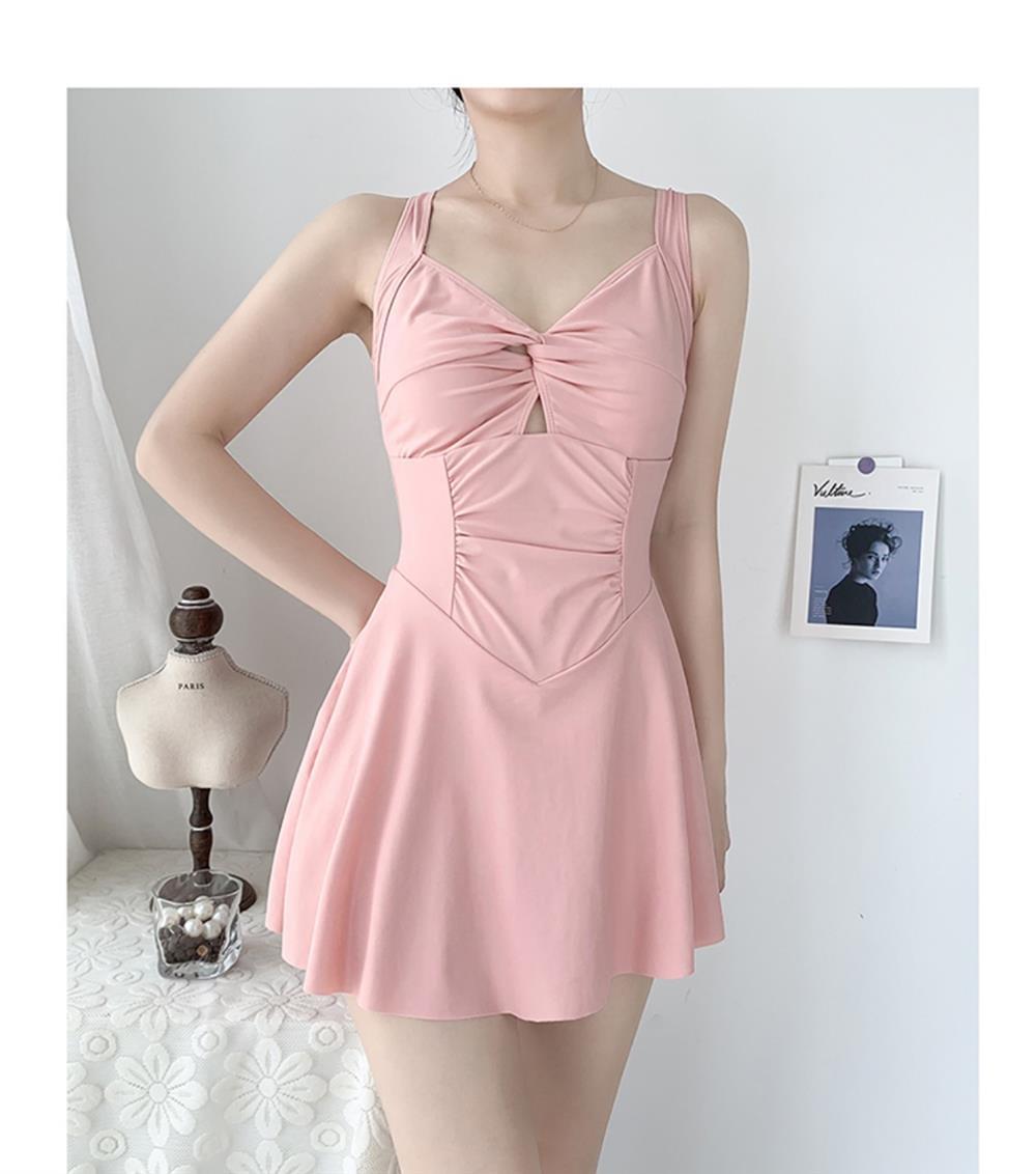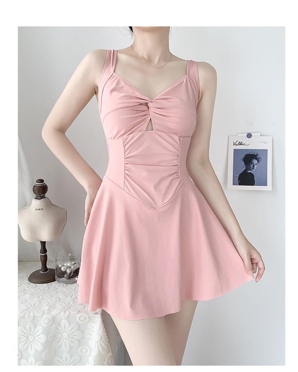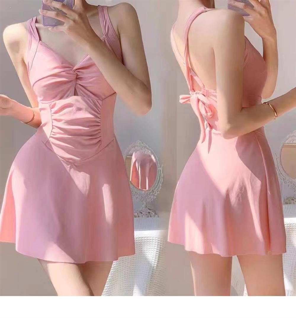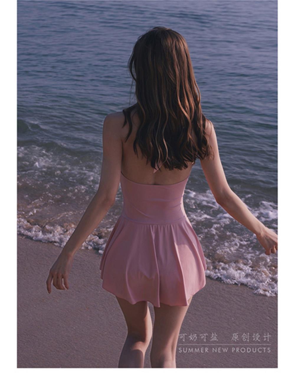 국경 간 도매 수영복 여성 온라인 유명 인사 슬림 배꼽 보수적 인 블랙 플랫 코너 목에 걸려있는 온천 수영복