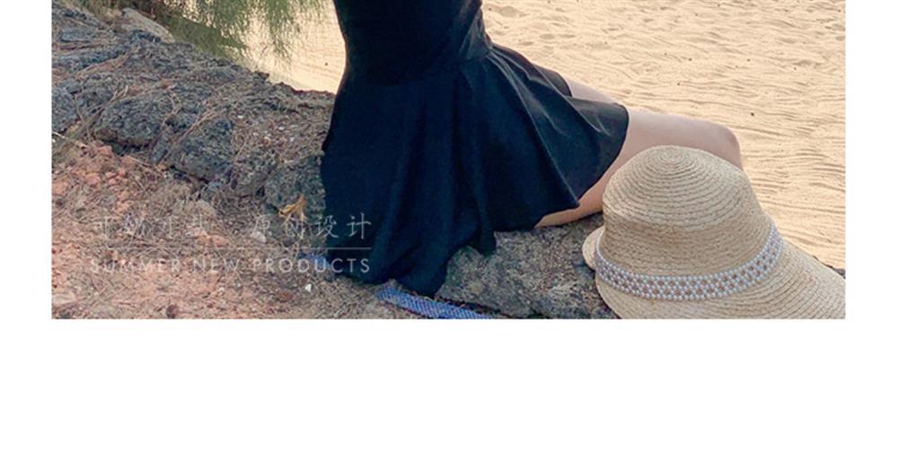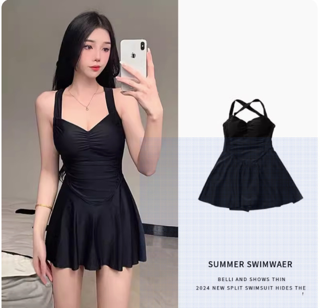 국경 간 도매 수영복 여성 온라인 유명 인사 슬림 배꼽 보수적 인 블랙 플랫 코너 목에 걸려있는 온천 수영복스토어 가기
