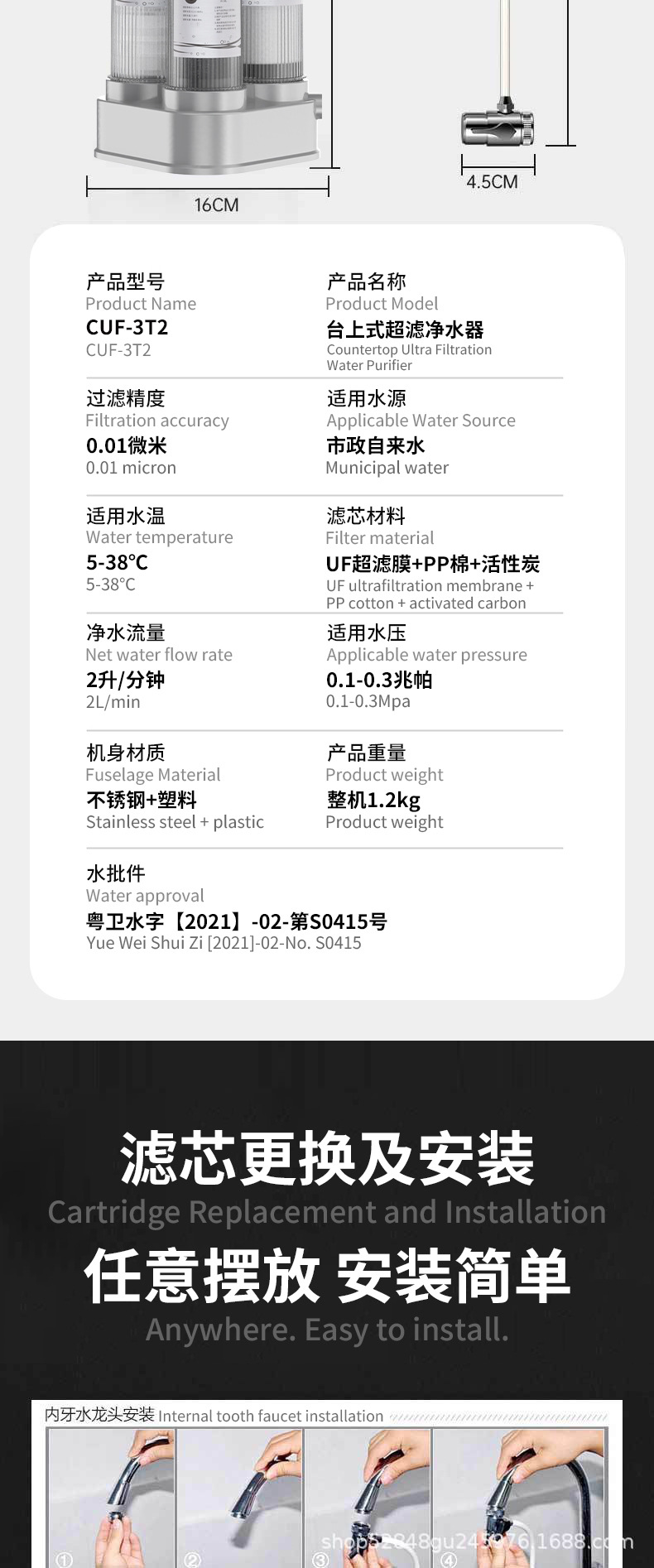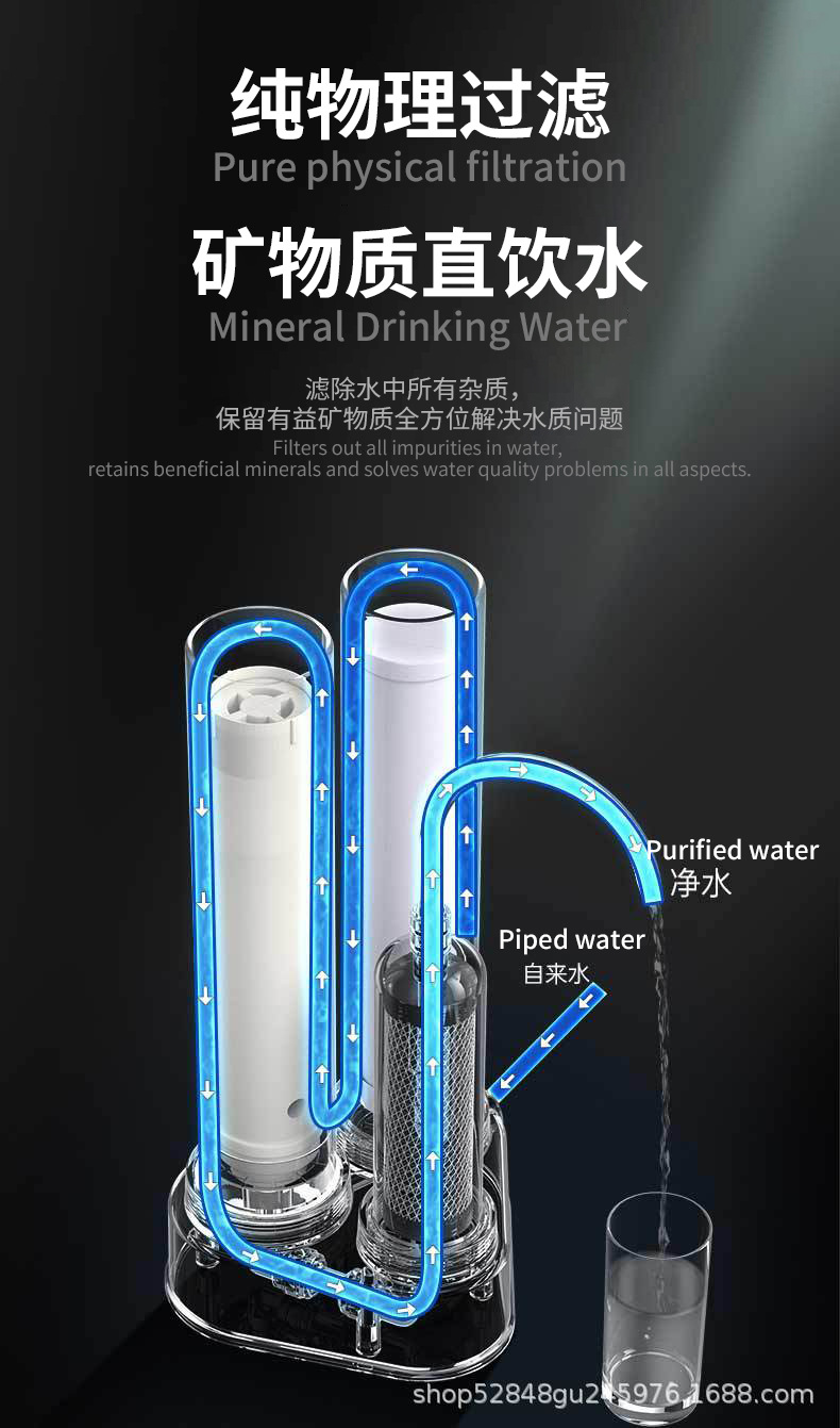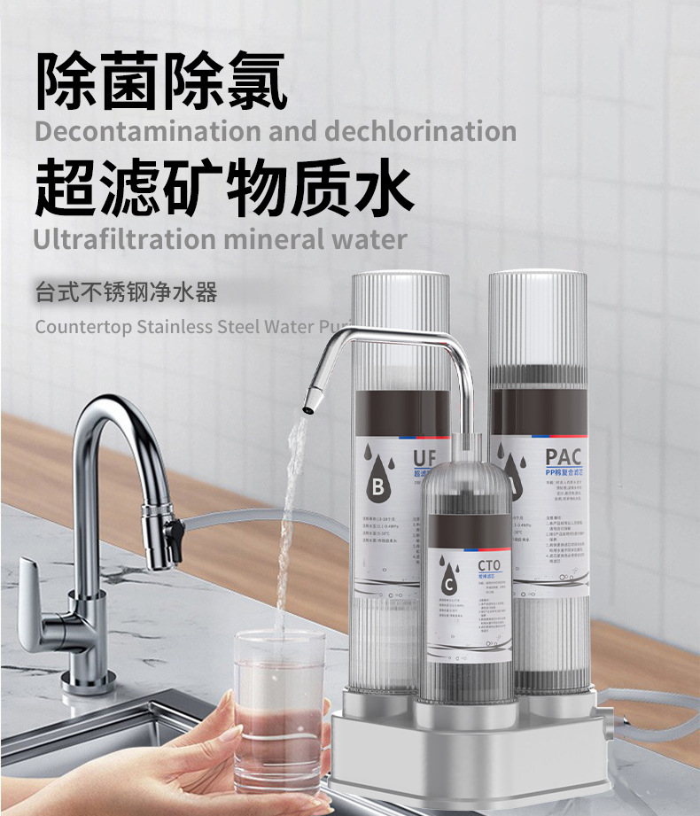 3단계 탁상용 정수기 주방용 초여과기 수돗물 석회질 방지 필터 투명 필터 정수기 염소 제거 및 세균 제거