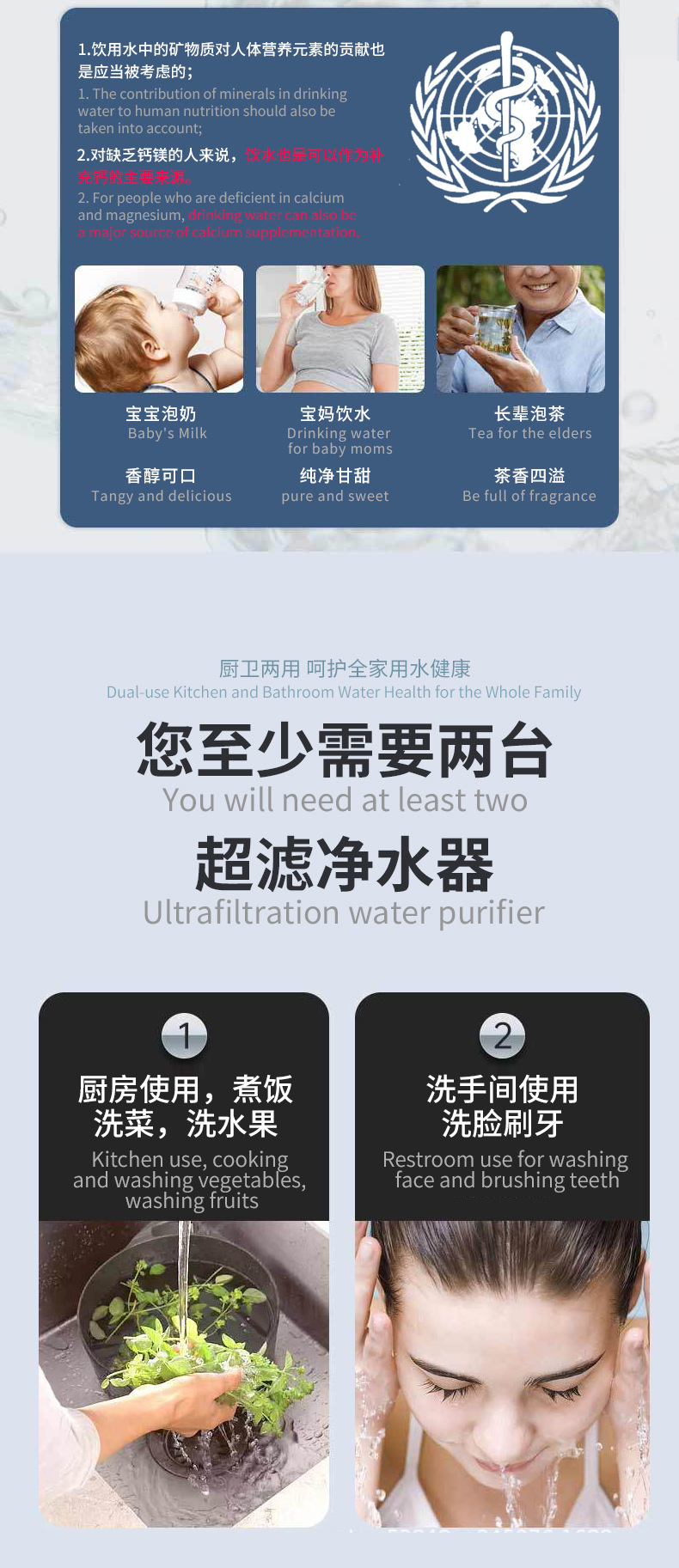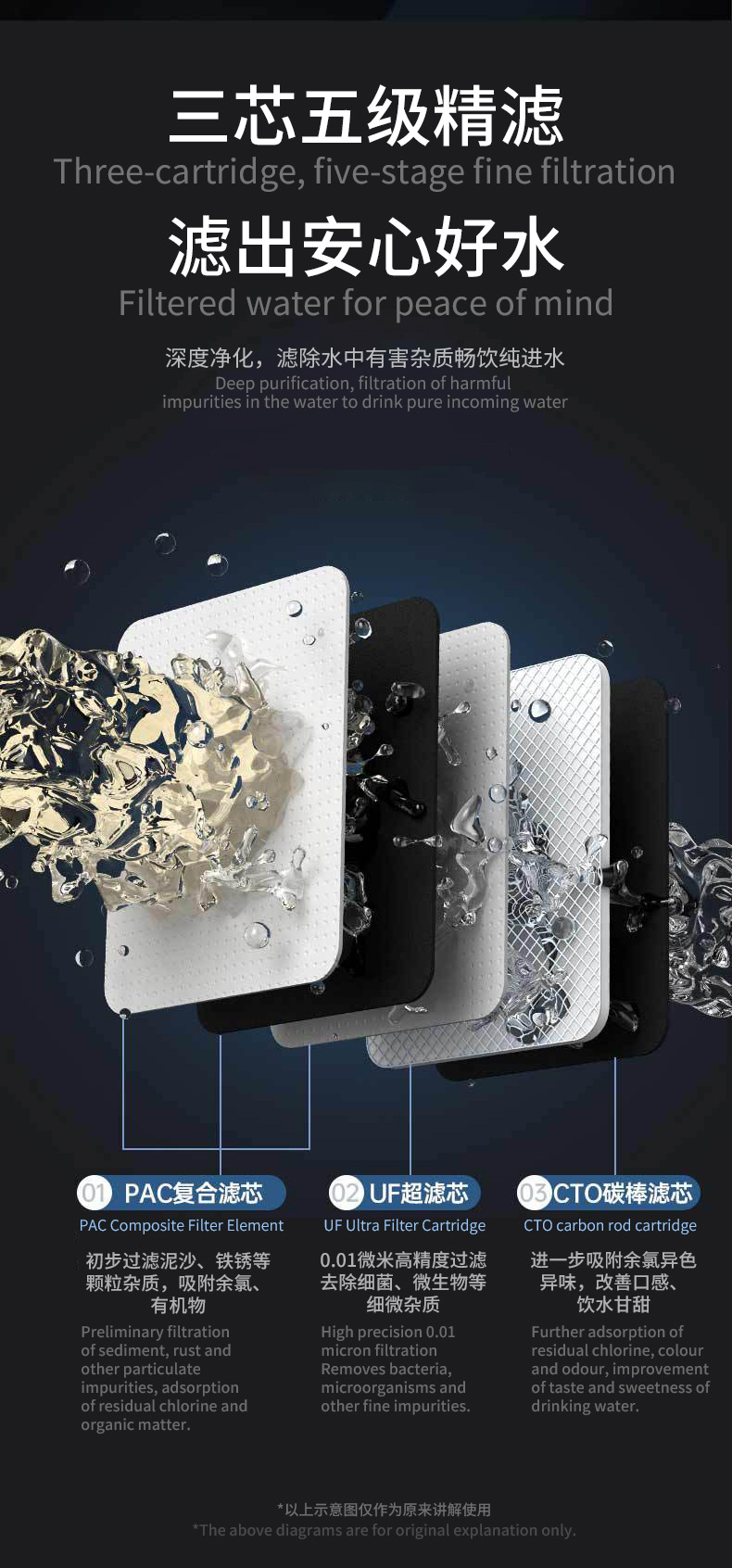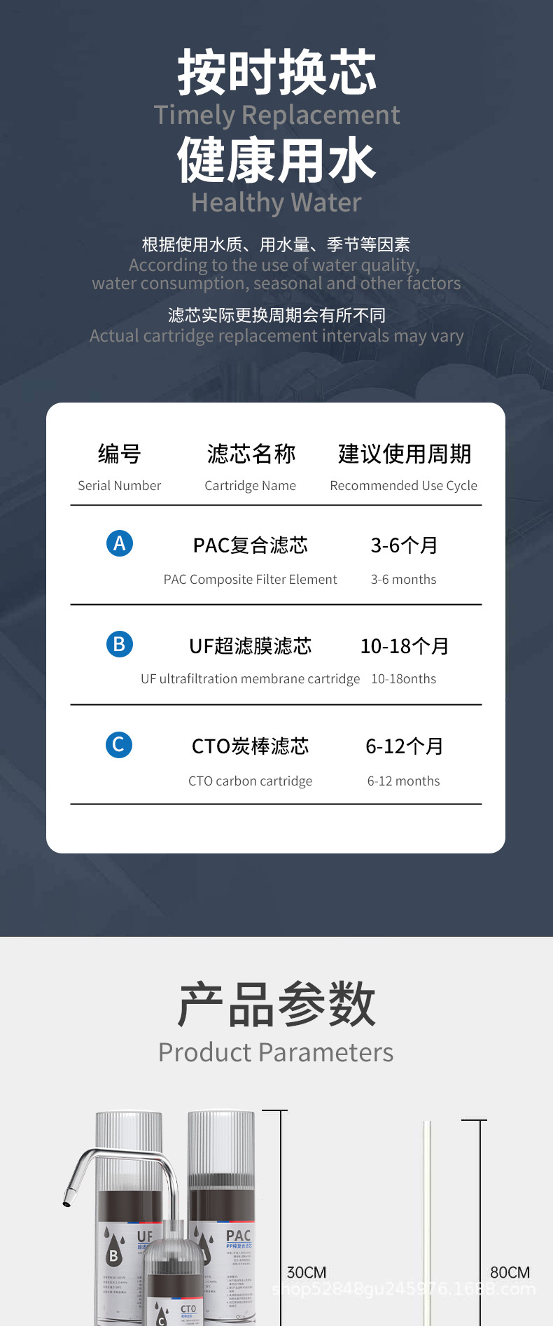 3단계 탁상용 정수기 주방용 초여과기 수돗물 석회질 방지 필터 투명 필터 정수기 염소 제거 및 세균 제거