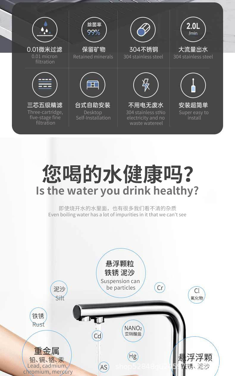 3단계 탁상용 정수기 주방용 초여과기 수돗물 석회질 방지 필터 투명 필터 정수기 염소 제거 및 세균 제거스토어 가기