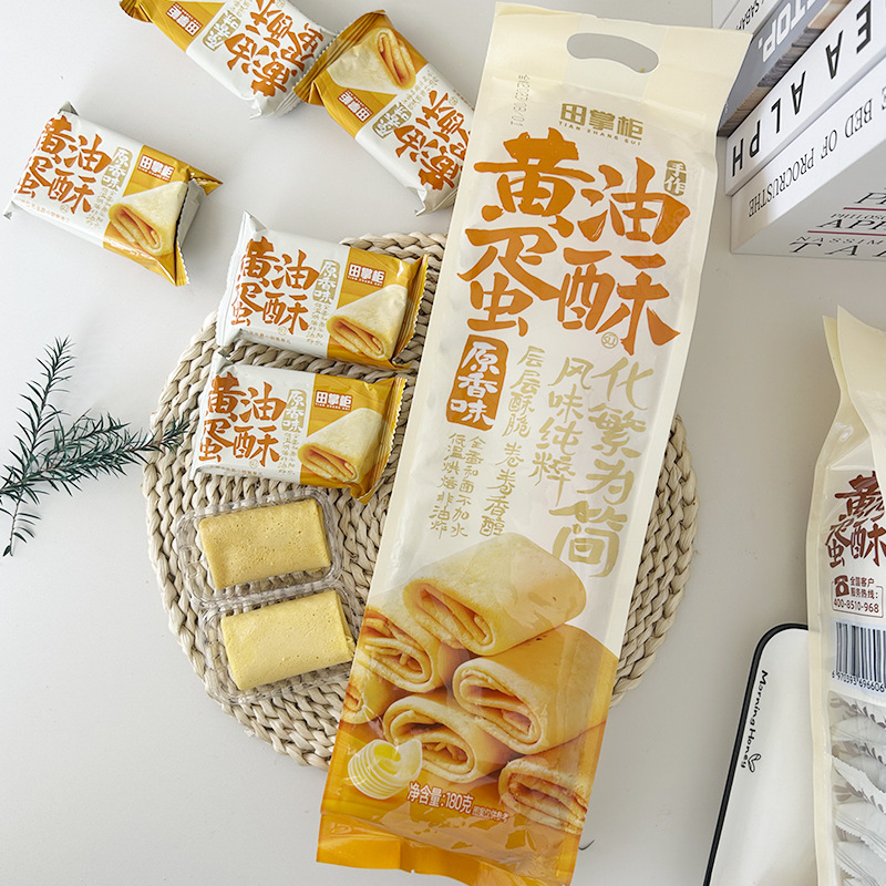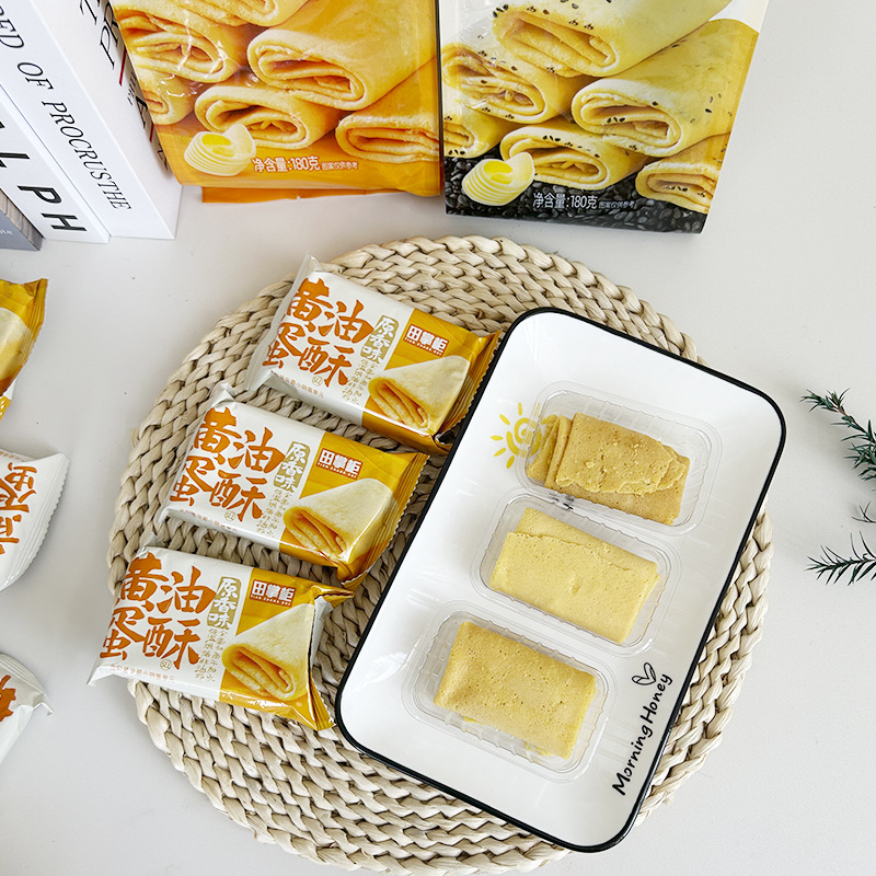 Tian Shopkeeper 버터 에그 롤 욕심 많은 오후 차 레저 간식 향기로운 바삭 바삭을 위해 물없이 튀긴 계란 롤
