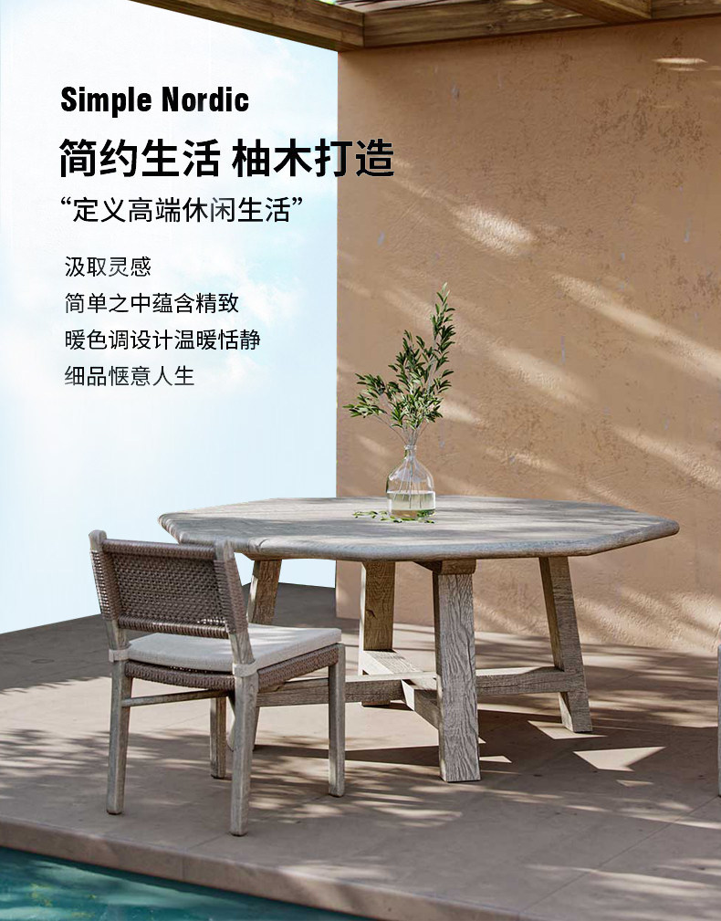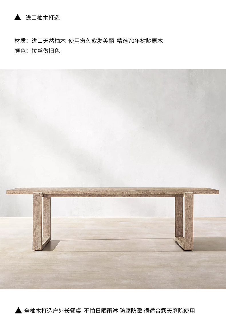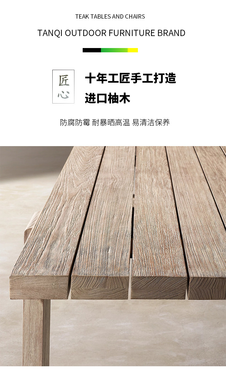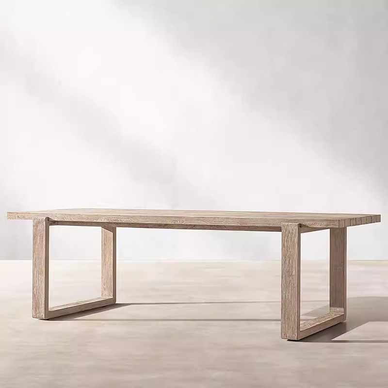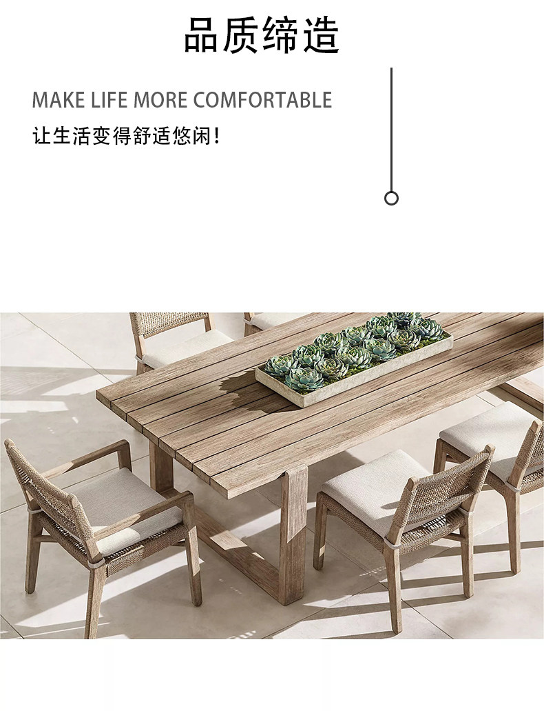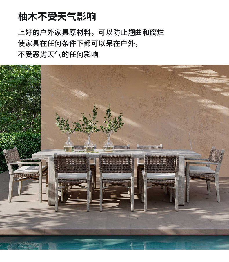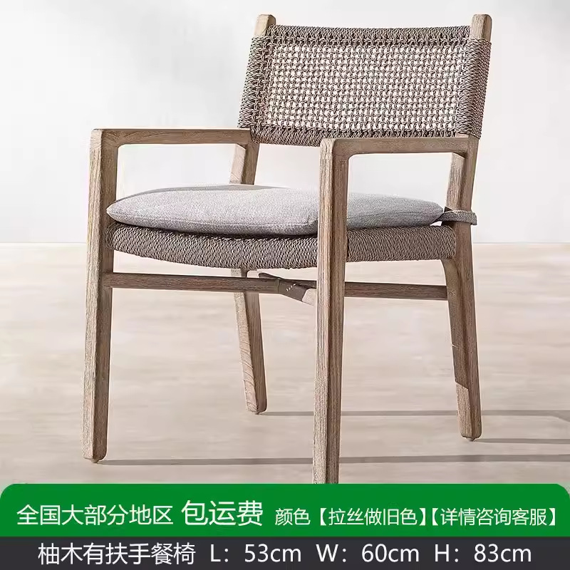 야외 티크 테이블과 의자 안뜰 빌라 부식 방지 야외 오래된 단단한 나무 등나무 의자 긴 테이블 가구 안뜰 테라스 가든스토어 가기