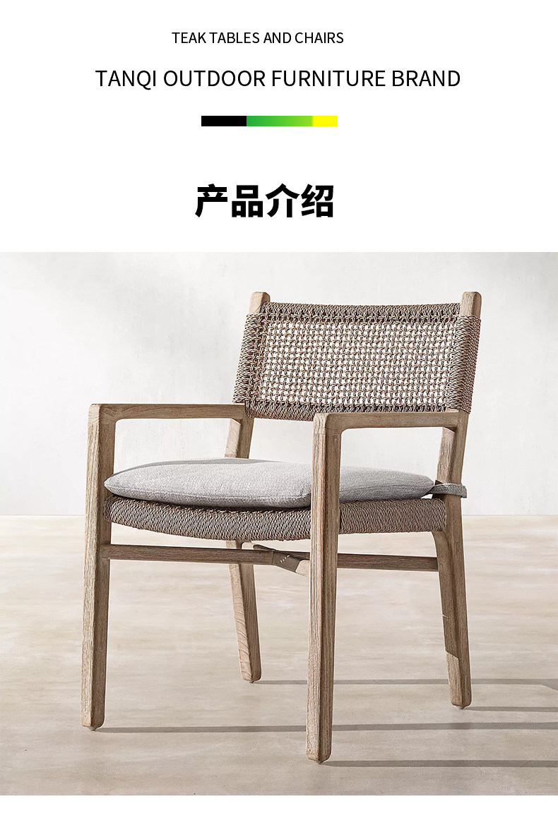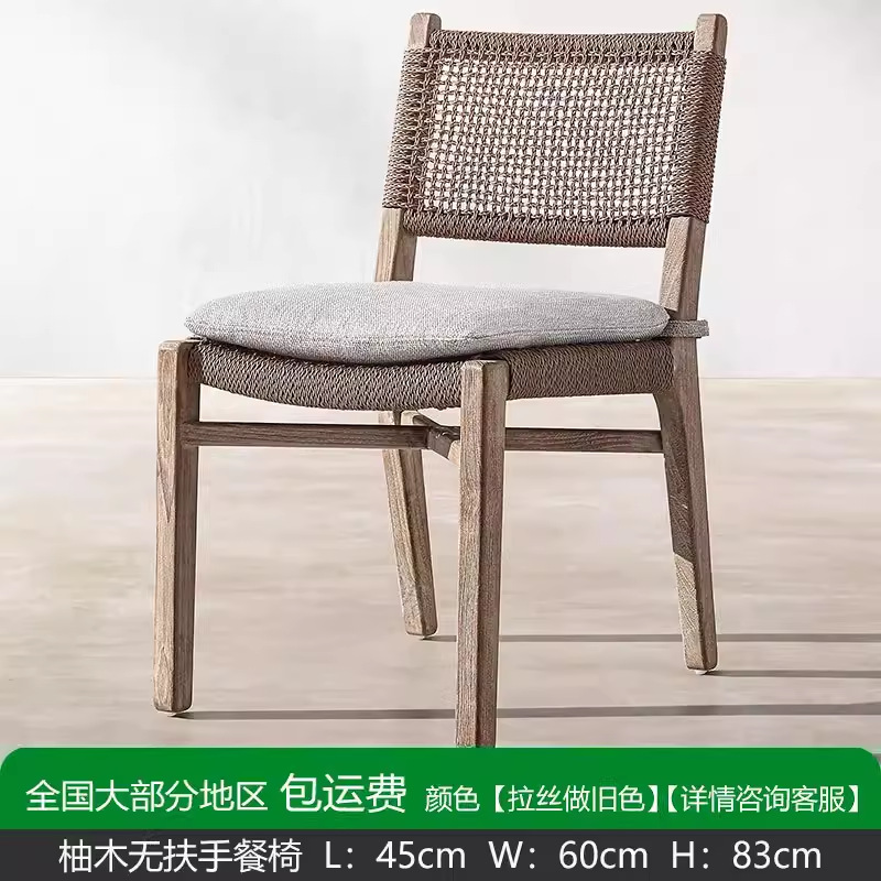 야외 티크 테이블과 의자 안뜰 빌라 부식 방지 야외 오래된 단단한 나무 등나무 의자 긴 테이블 가구 안뜰 테라스 가든