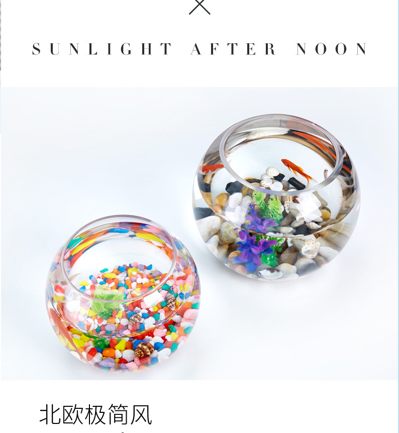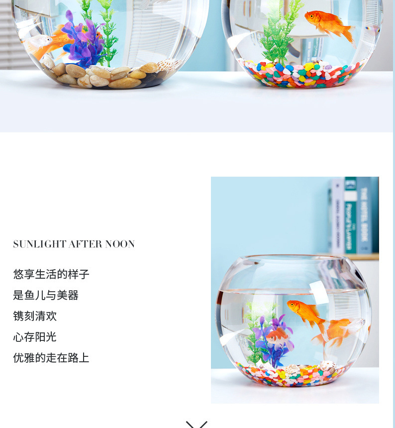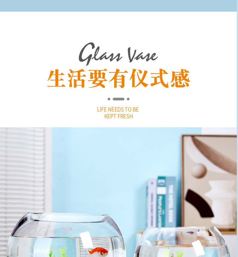 슈퍼 화이트 라운드 투명 유리 어항 데스크탑 거북 탱크 금붕어 탱크 수경 거실 대형 두꺼운 어항스토어 가기
