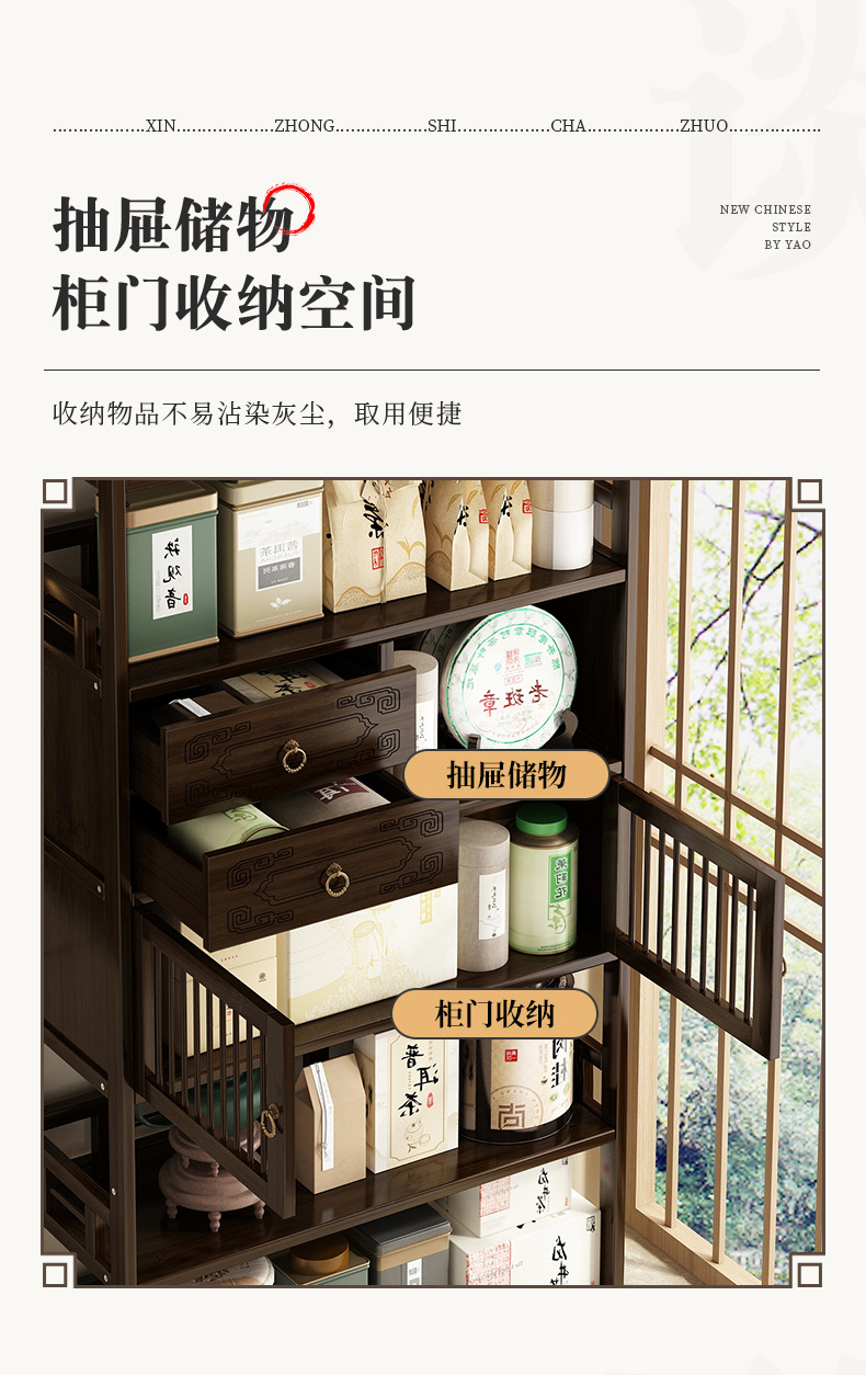 차 랙 저장 랙 솔리드 우드 차 저장 캐비닛 거실 작은 보구 랙 차 디스플레이 캐비닛 티룸 차 랙스토어 가기