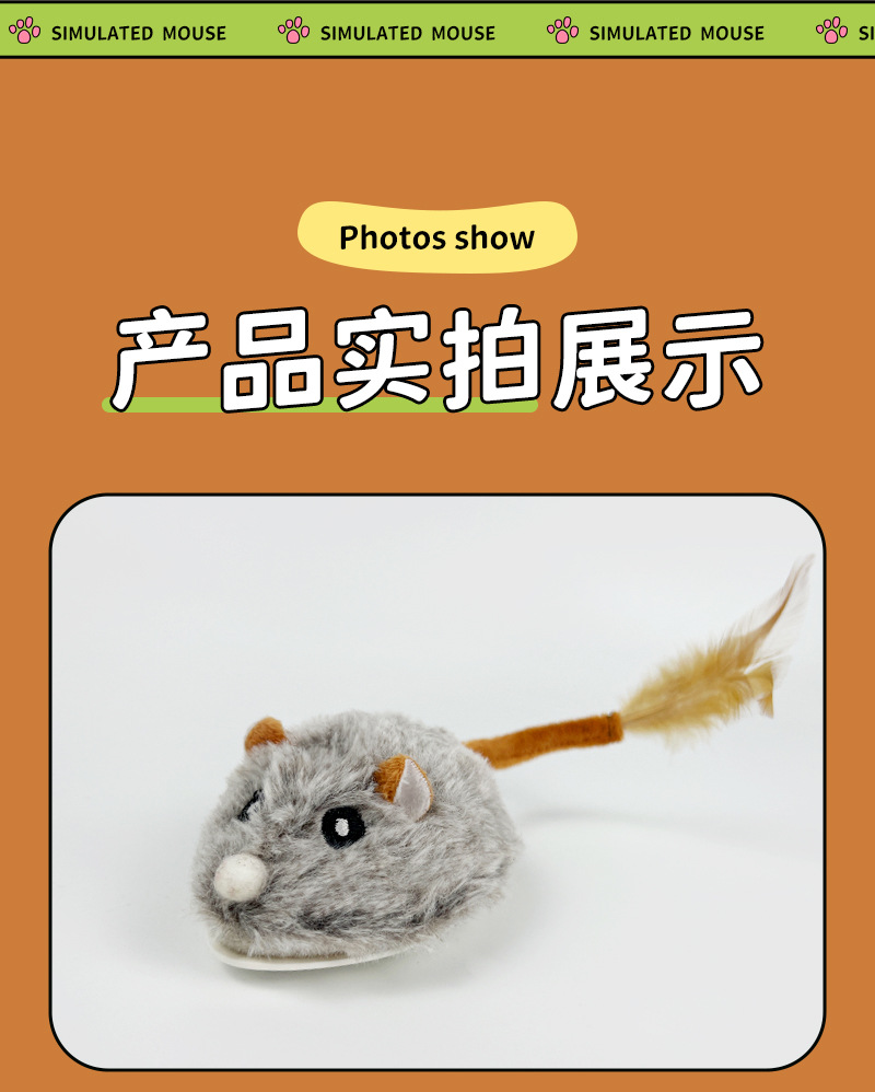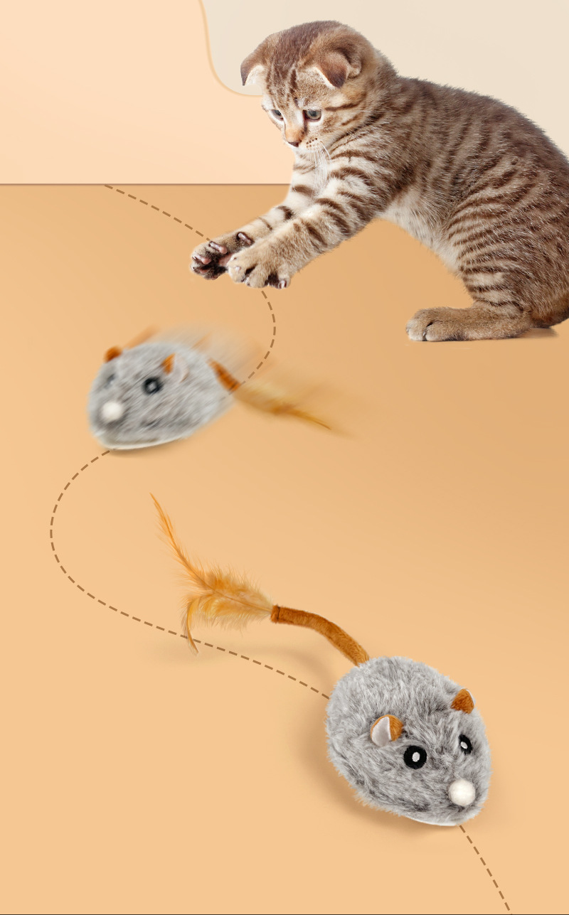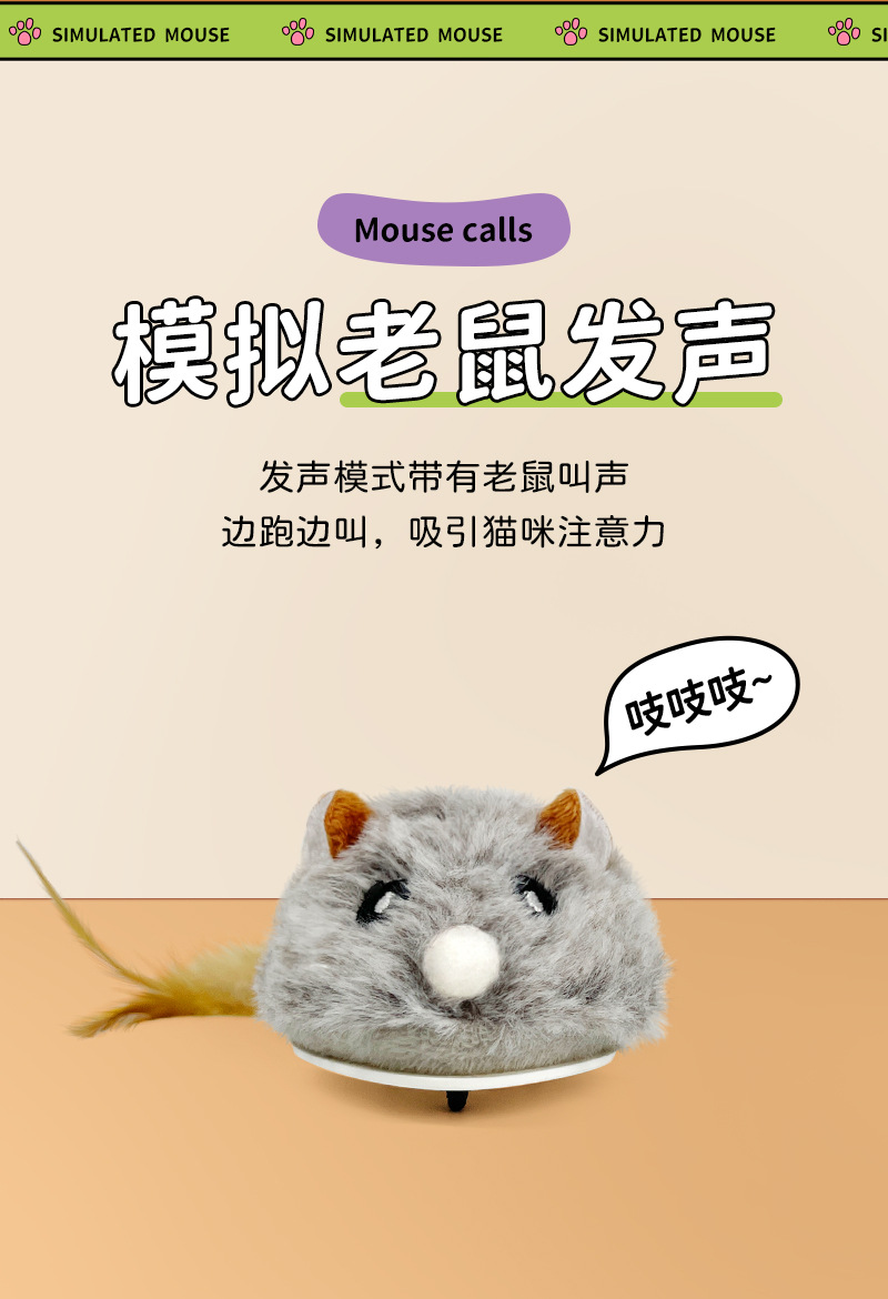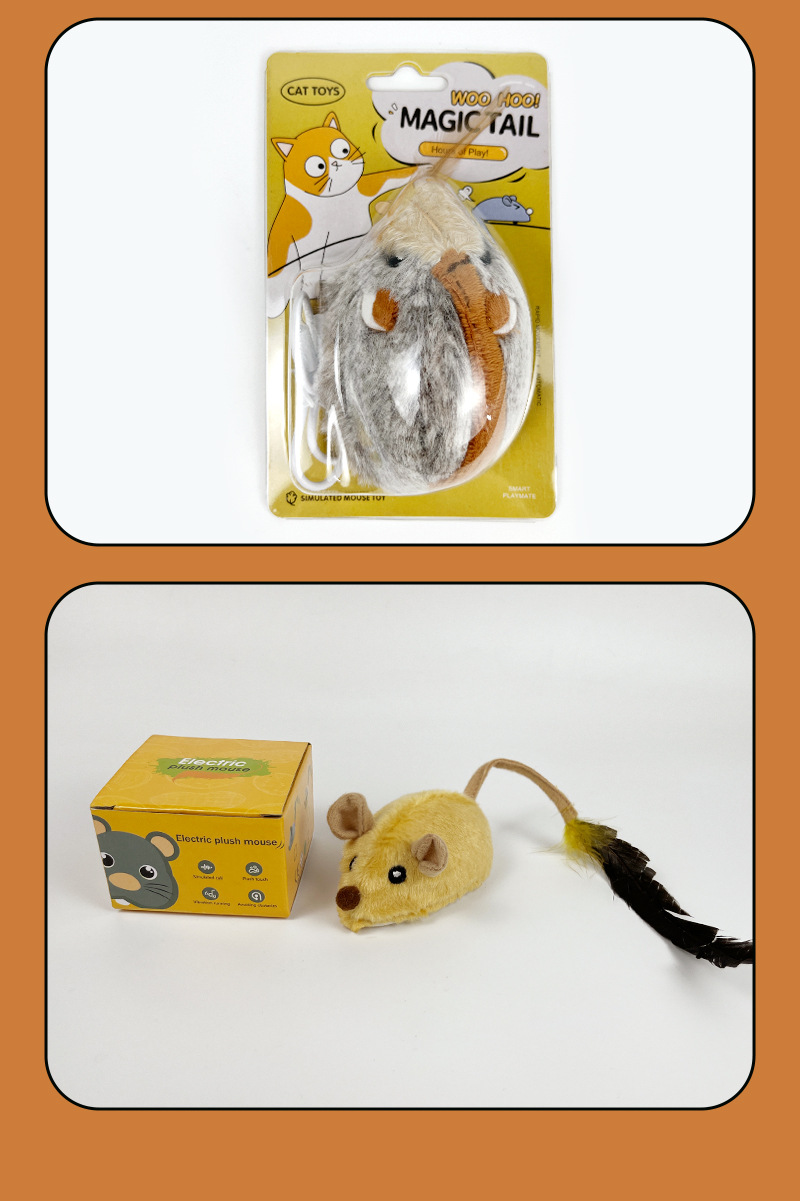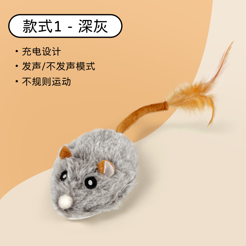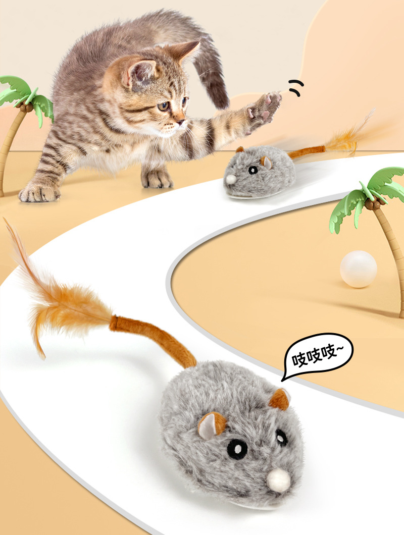 애완 동물 시뮬레이션 음성 마우스 충전 고양이 장난감 깃털 꼬리 고양이 잠금 마우스 장난감 도매 국경스토어 가기