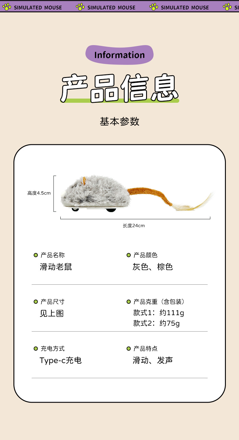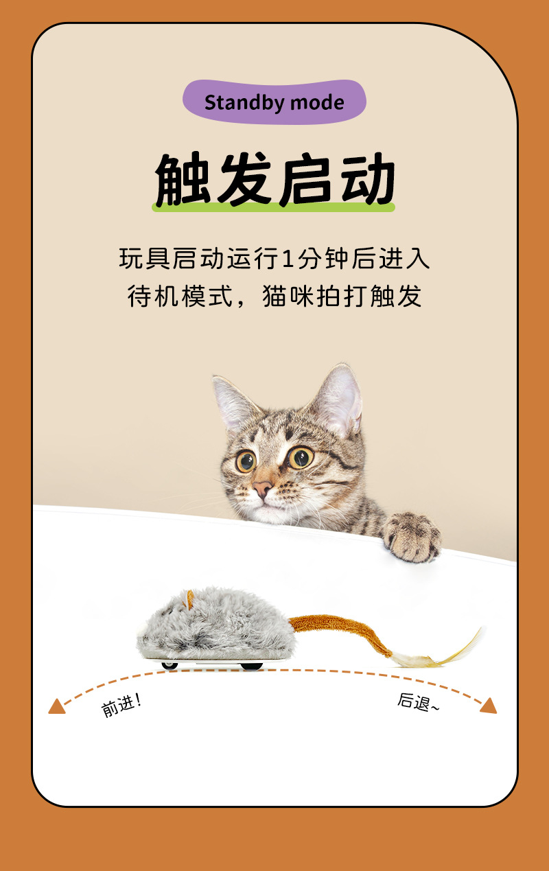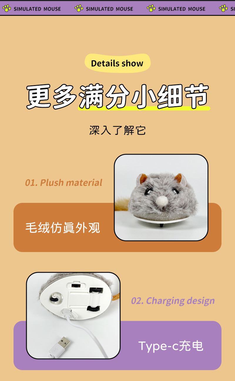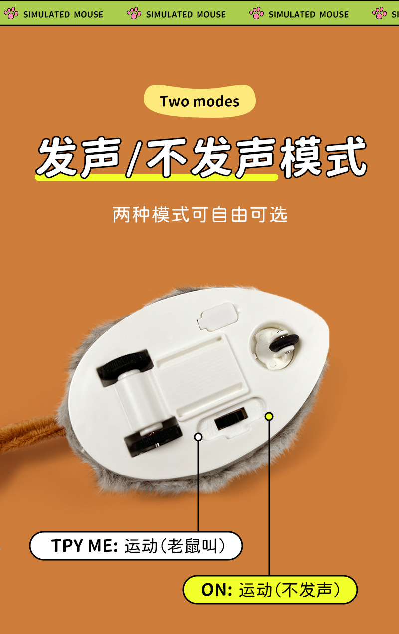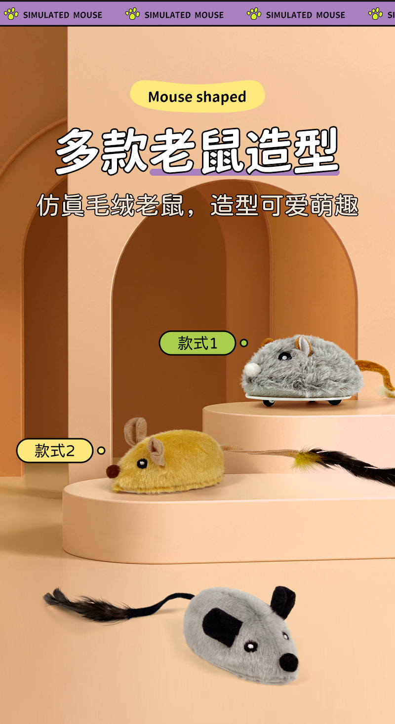 애완 동물 시뮬레이션 음성 마우스 충전 고양이 장난감 깃털 꼬리 고양이 잠금 마우스 장난감 도매 국경스토어 가기