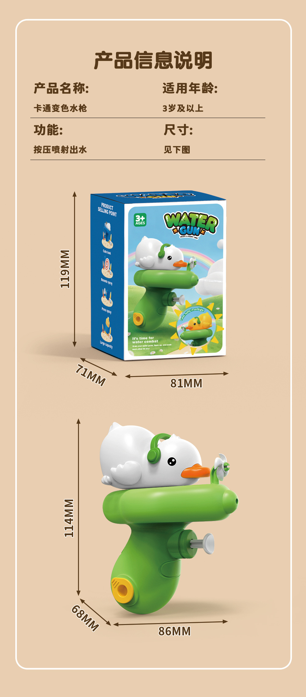 产品名称: 变色水枪(彩盒装)