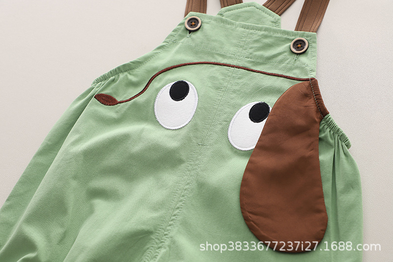 소년 만화 크루 넥 짧은 소매 스트랩 세트 여름 아기 캐주얼 강아지 스트랩 2 피스 세트 원피스 헤어