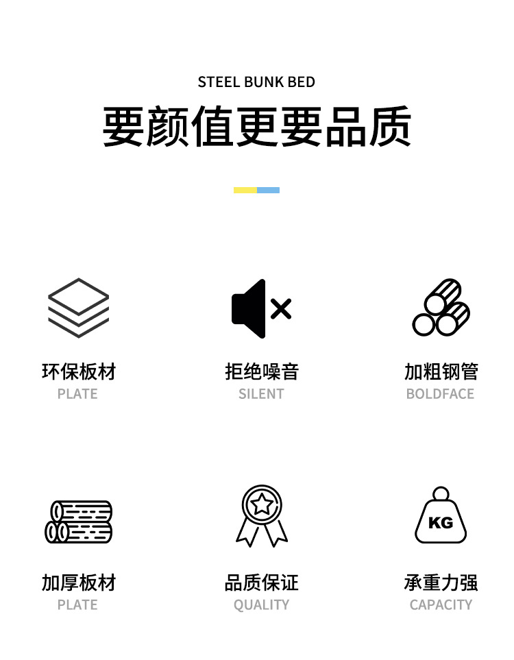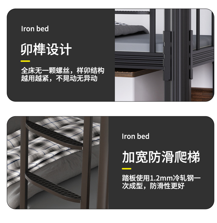 Klin Shi 두꺼운 이층 침대 이중 철 프레임 침대 학교 직원 기숙사 높고 낮은 프로파일 아파트 이층 철 침대