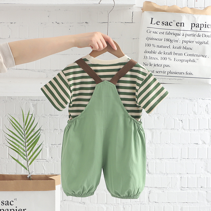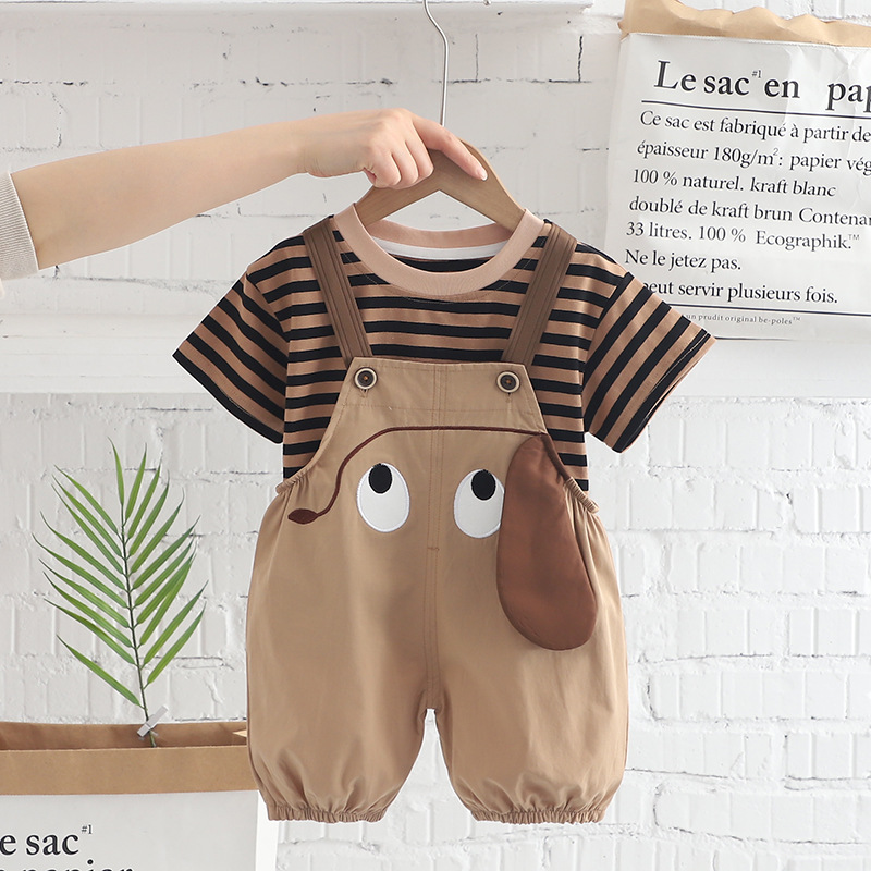여름 소년 반소매 세트 신식 어린이 패션 프라이드 스트리트 보이즈 여름 입체 귀 스트랩 반팔 세트스토어 가기