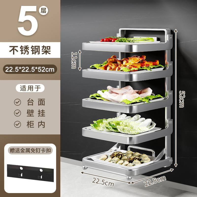 • [벽 교수형/조리대 이중 사용] 접이식 스테인레스 스틸 5 층