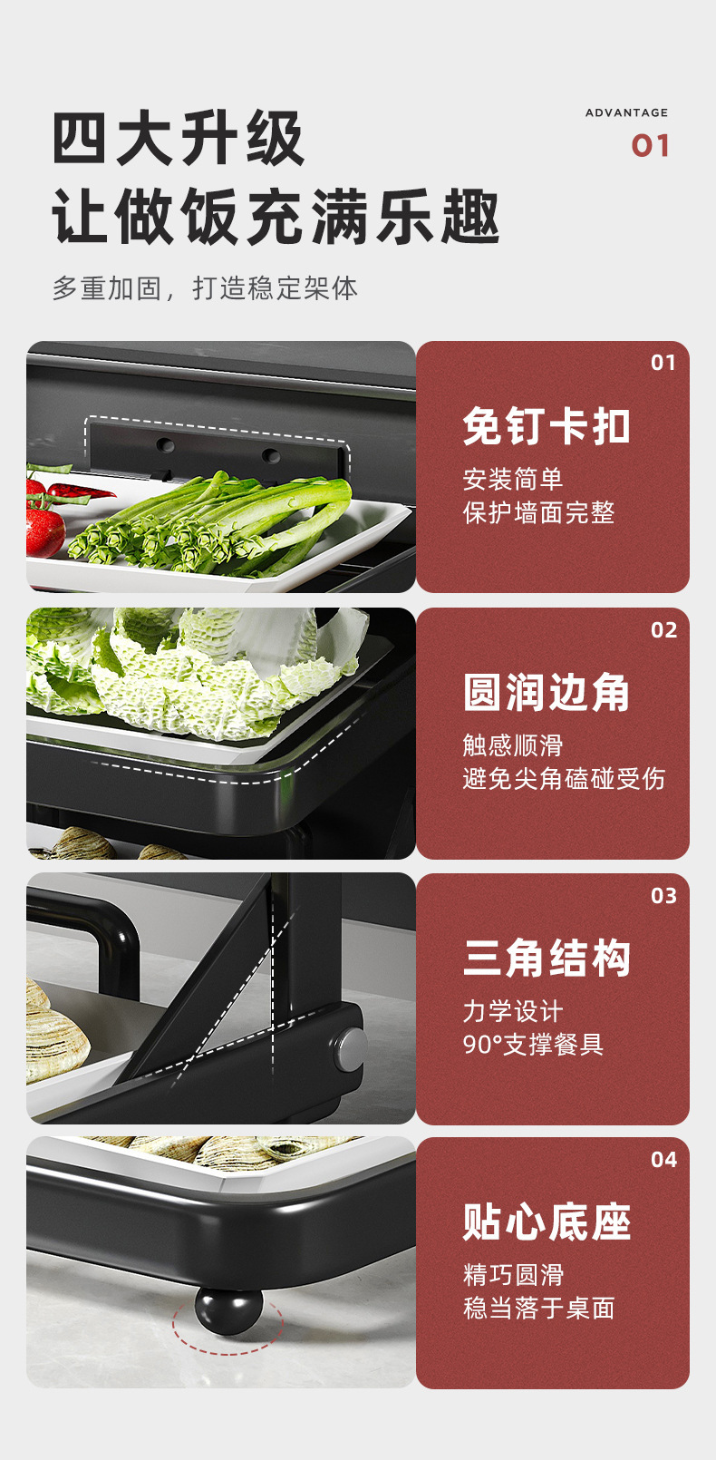 折叠备菜置物架厨房配菜壁挂多层配菜盘家用备餐多功能菜盘收纳架