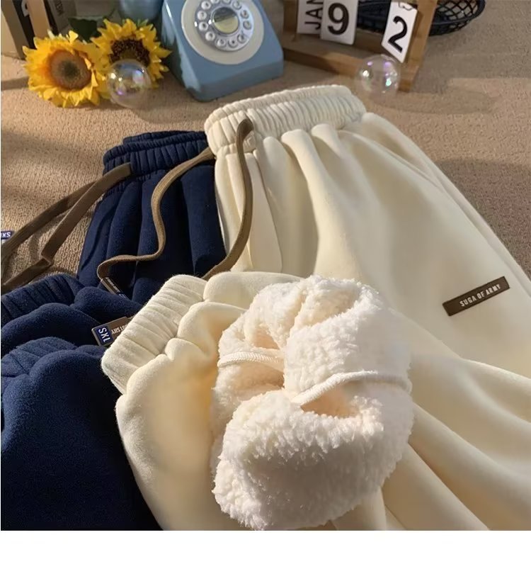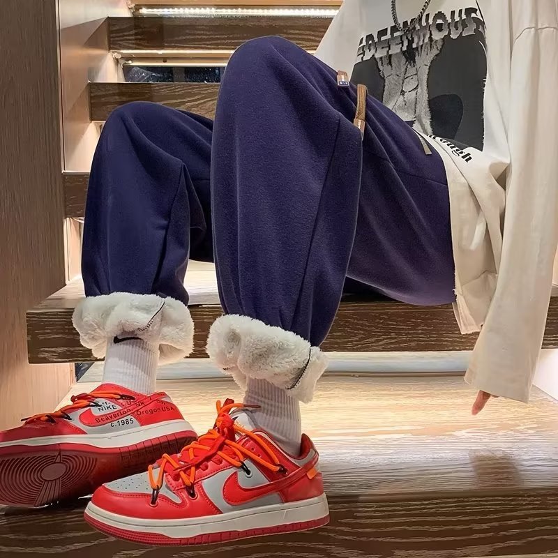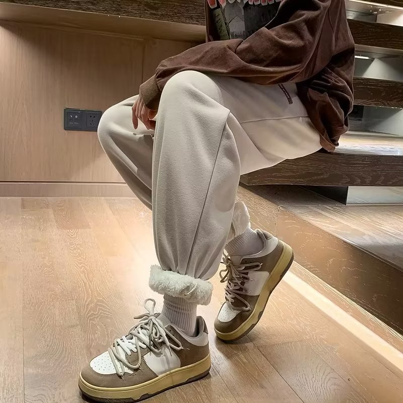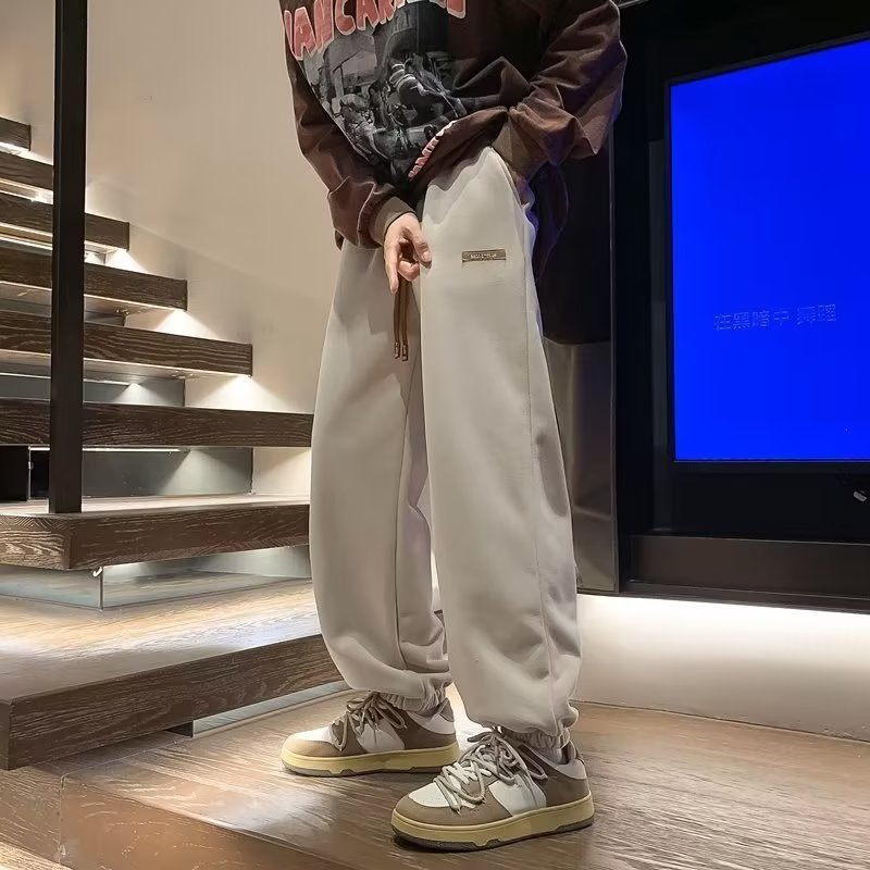 가을과 겨울 기모 두꺼운 느슨한 캐주얼 바지 미국 스타일 하이 스트리트 트렌디 스포츠 운동복 남자 양털 바지스토어 가기