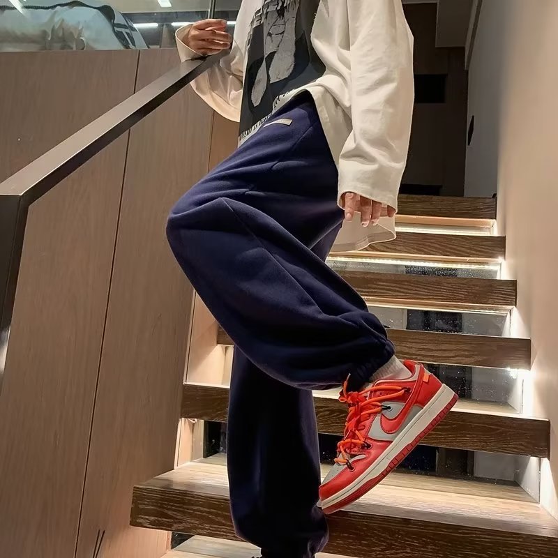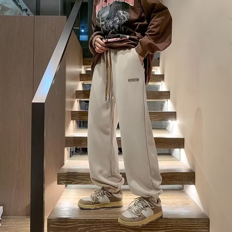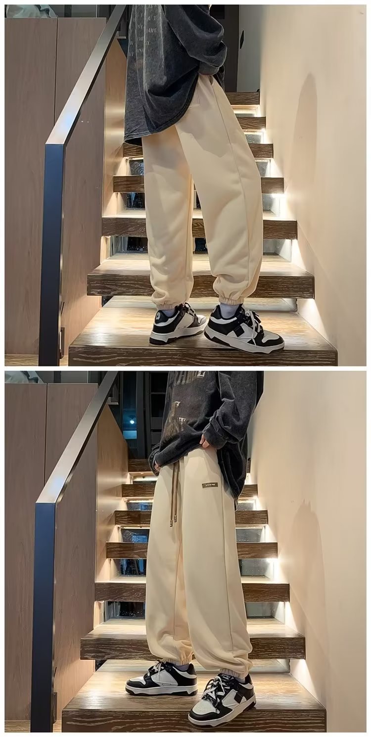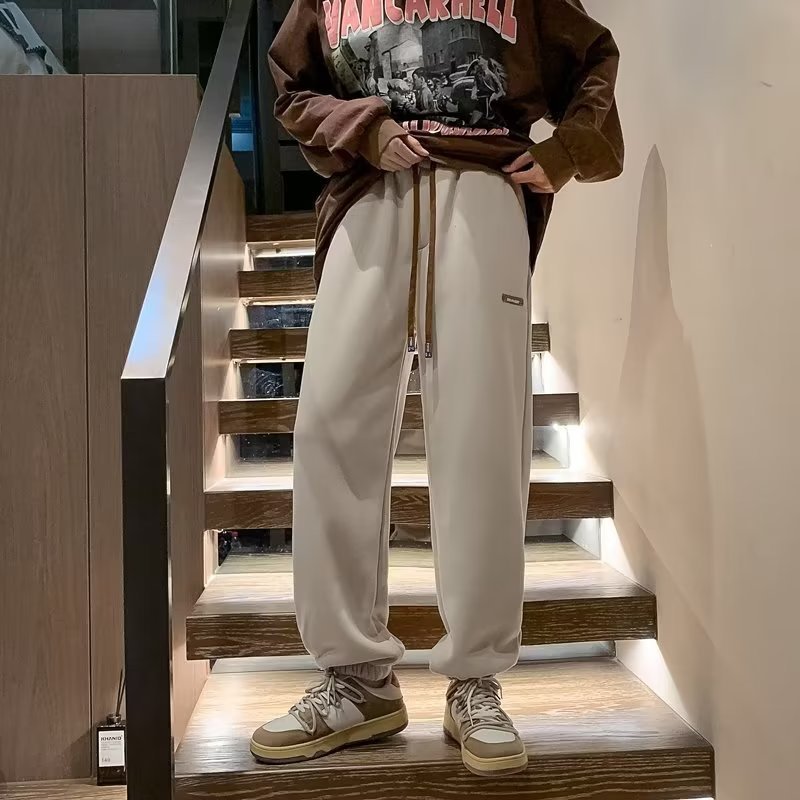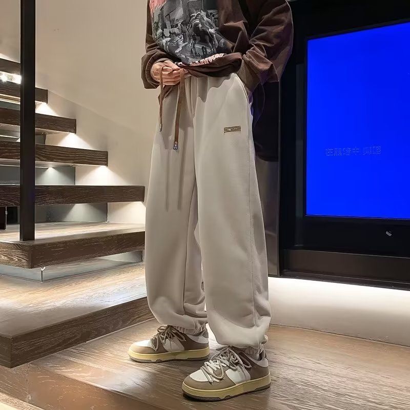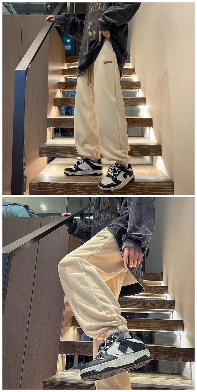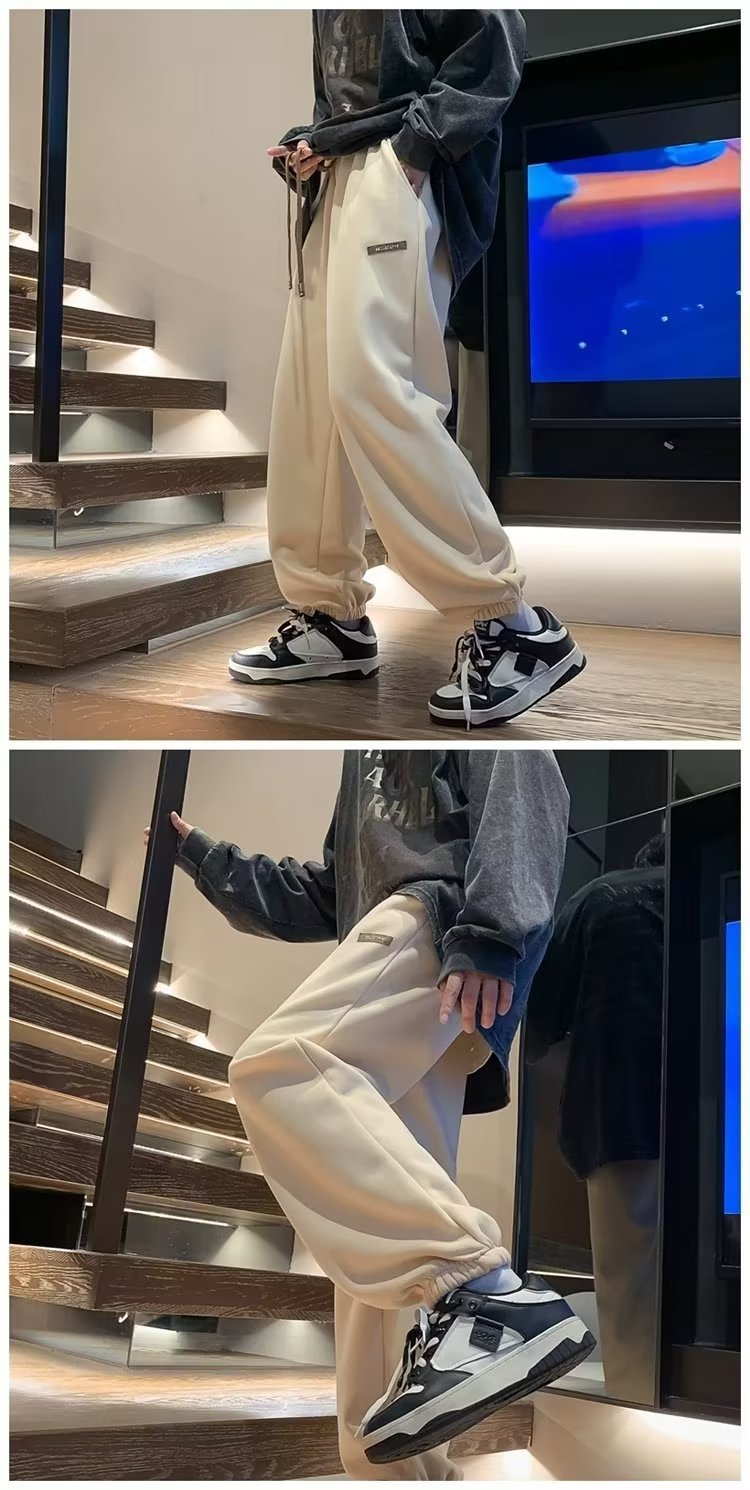 가을과 겨울 기모 두꺼운 느슨한 캐주얼 바지 미국 스타일 하이 스트리트 트렌디 스포츠 운동복 남자 양털 바지