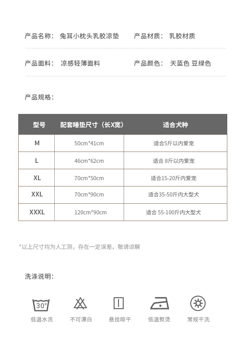 보블라 신제품 개 잠자는 매트 라텍스 매트 여름 매트 귀여운 토끼 귀 베개 이동식