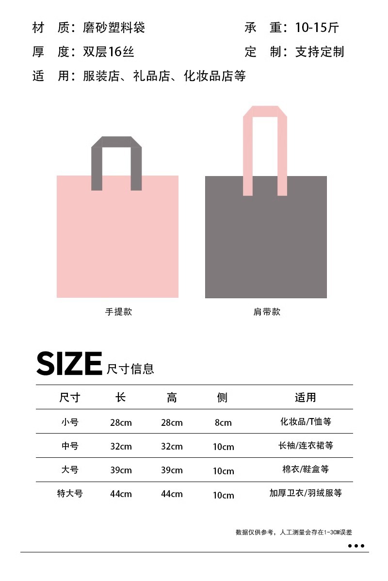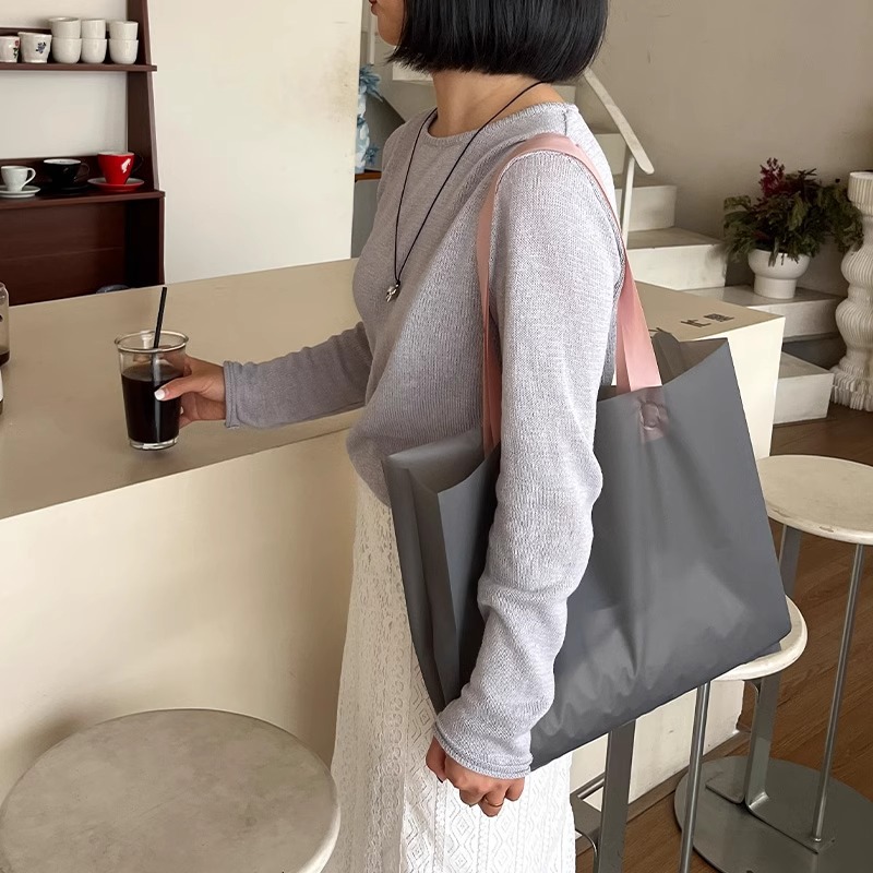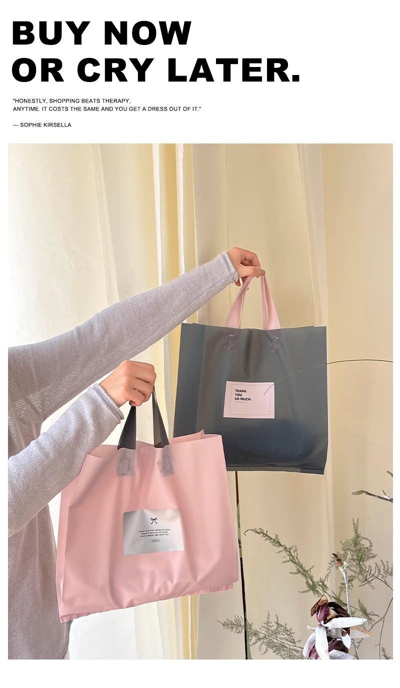 고급 의류 매장 핸드백 젖빛 플라스틱 쇼핑 포장 의류 선물 포장 가방 스팟 도매스토어 가기
