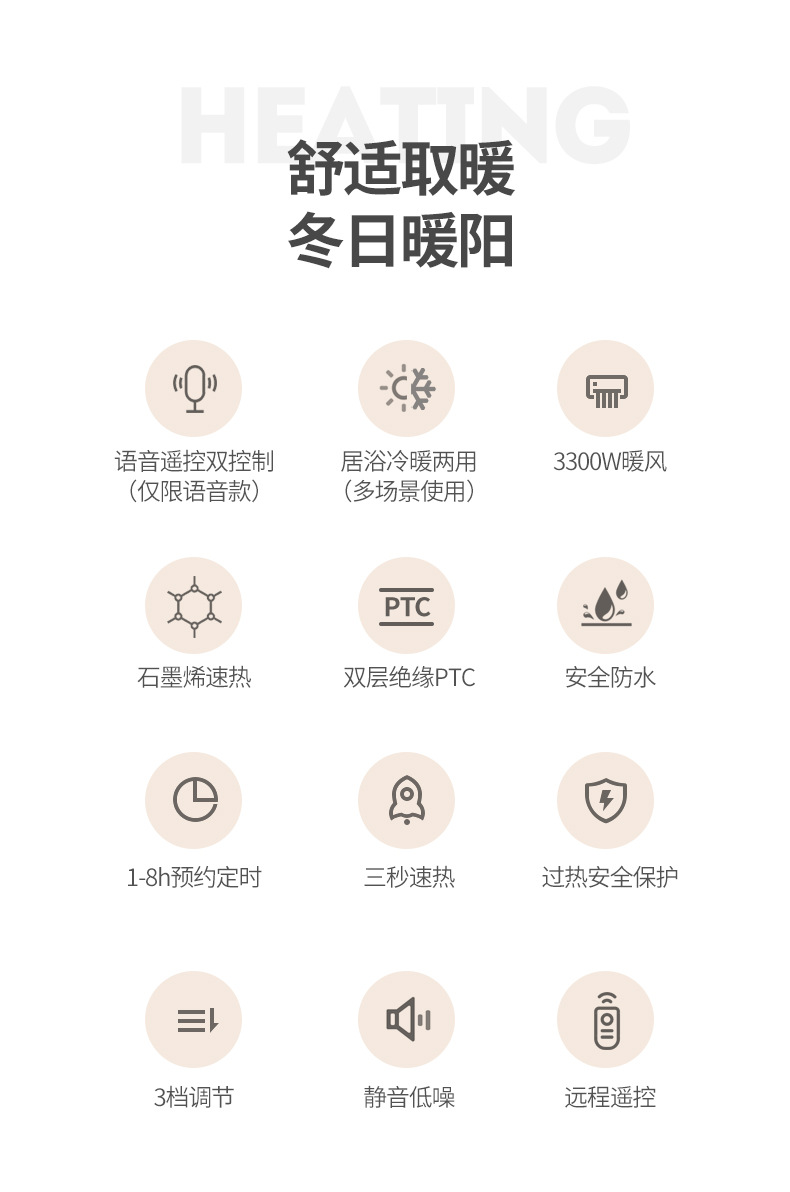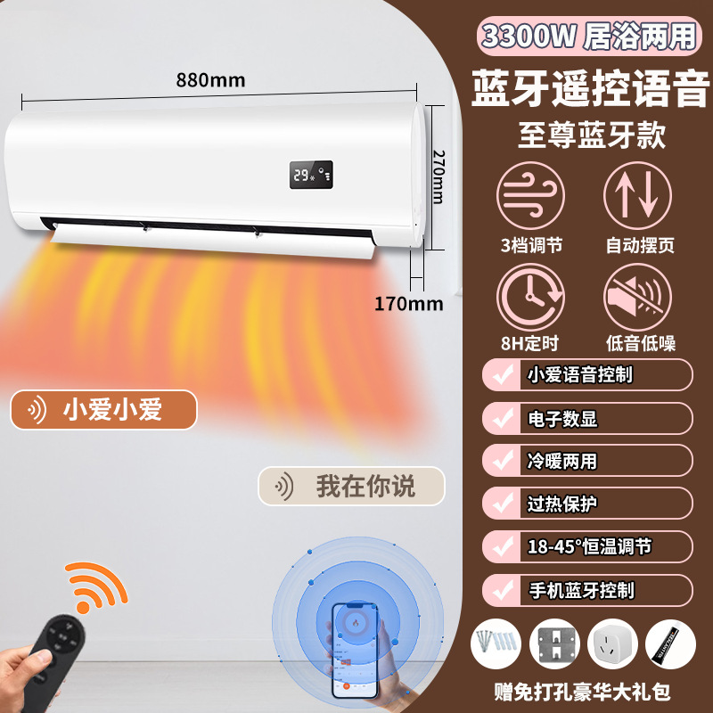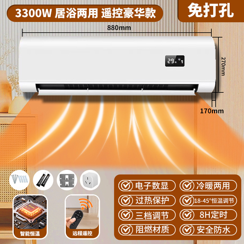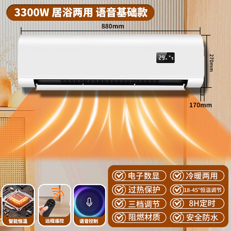 벽걸이형 히터 가정용 침실 욕실 방수 타이머 음성 기능 무타공 3300w 히터