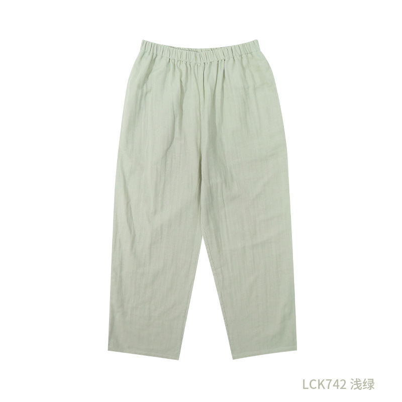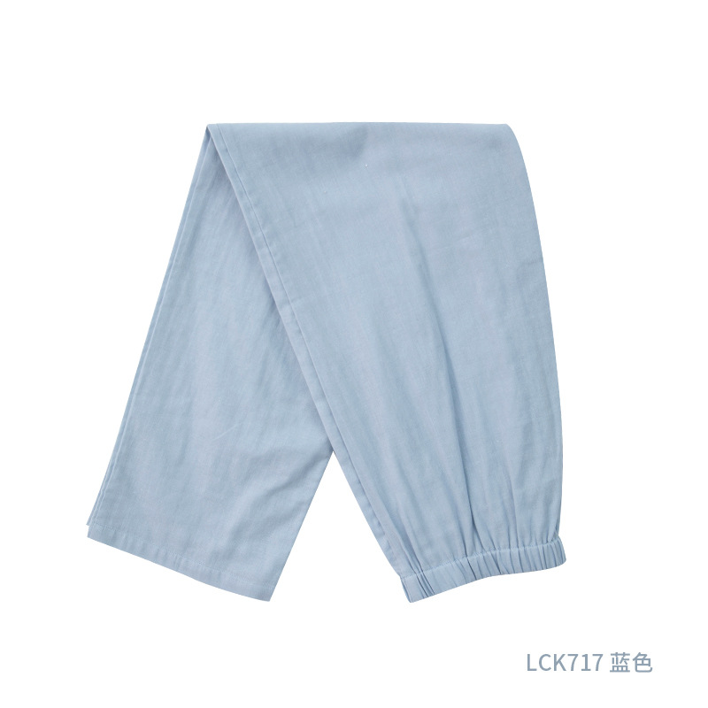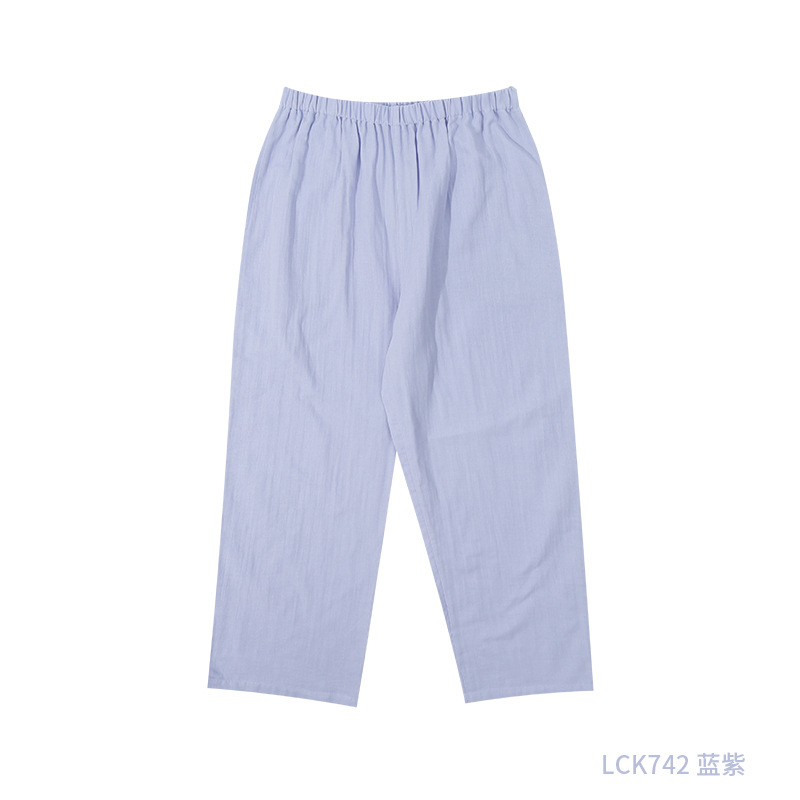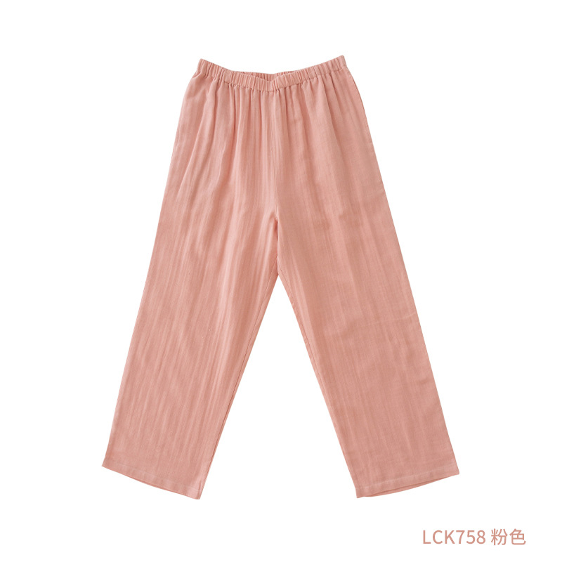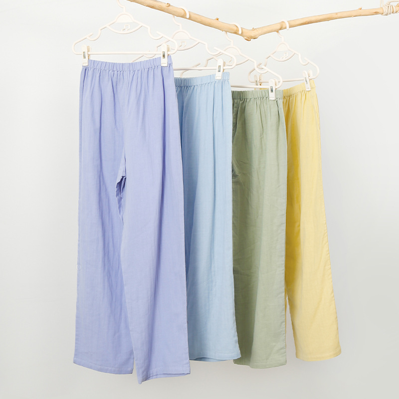 파자마 바지 여성 면 봄과 가을 걷는 면 더블 레이어 거즈 솔리드 컬러 얇은 여름 100% 면 대형 자른 바지스토어 가기
