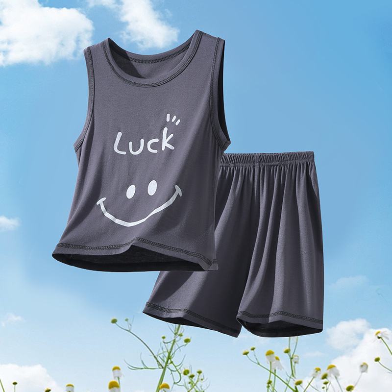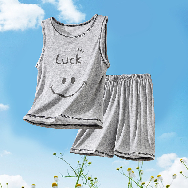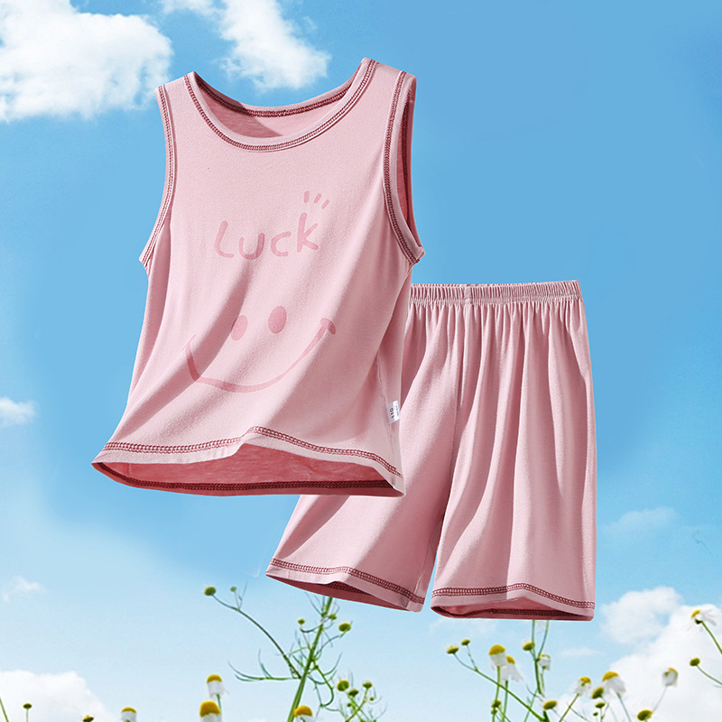 어린이 조끼 세트 여름 새 소년과 소녀 모달 조끼 반바지 투피스 아기 민소매 베이스 셔츠스토어 가기