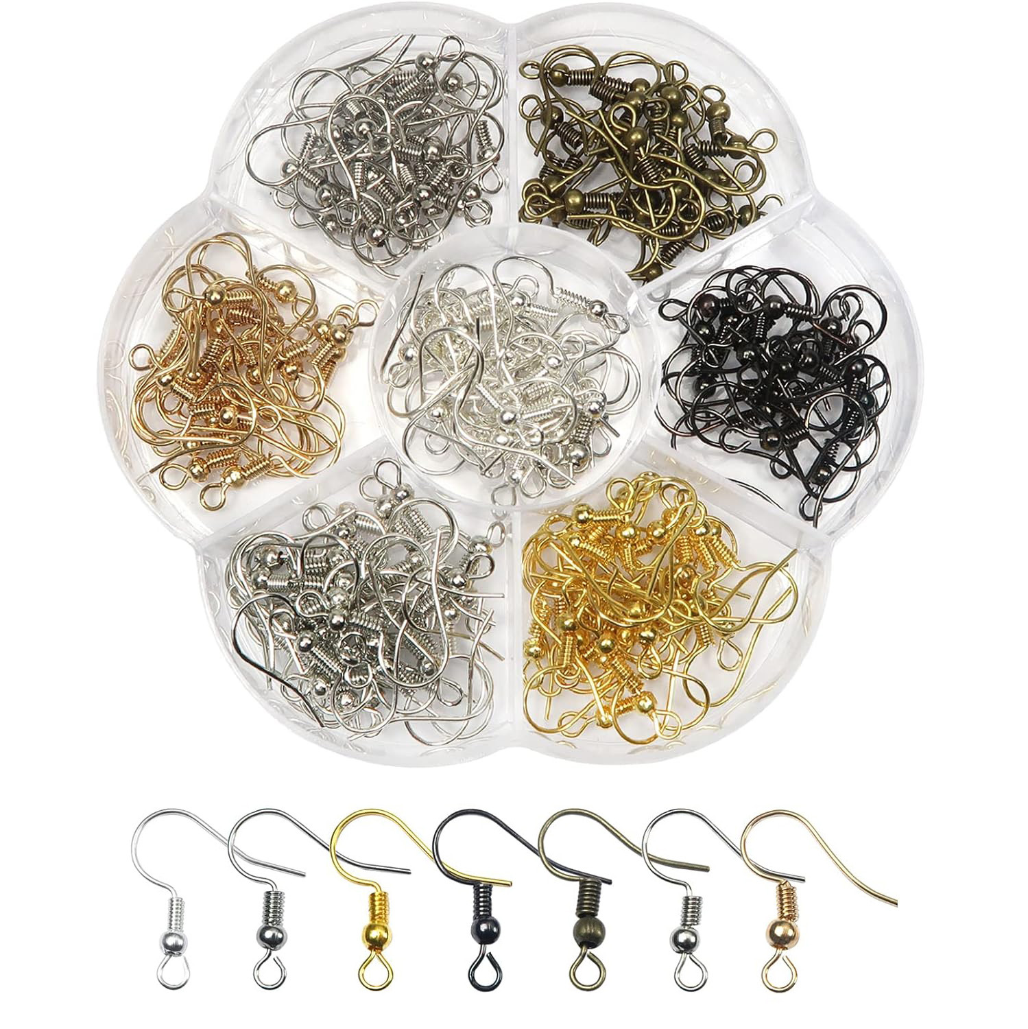 140pcs 매화 7 그리드 철 귀 후크 7 색 귀 후크 스토리지 세트 DIY 귀걸이 귀걸이 귀걸이 보석 생산 재료