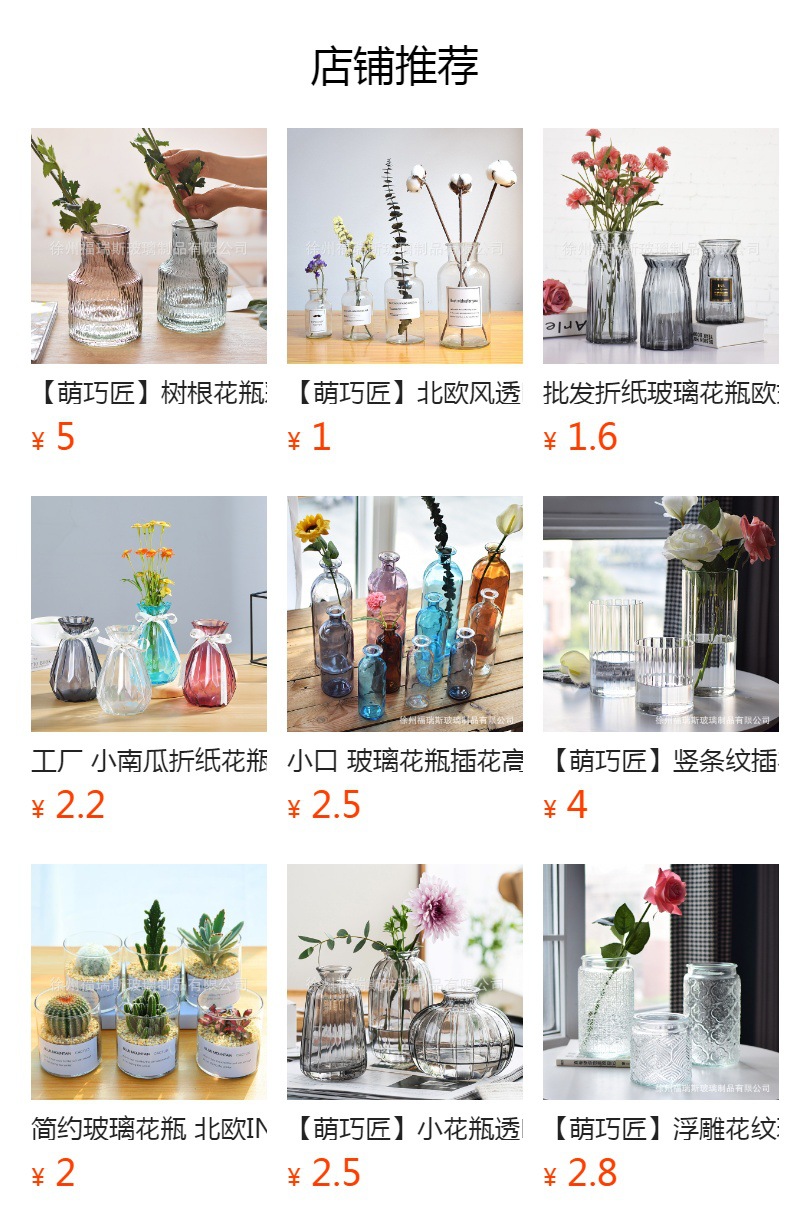 도매 투명 유리 미니 꽃병 북유럽 인 녹색 식물 수경 장식 신선한 천연 녹색 딜 유리 병스토어 가기