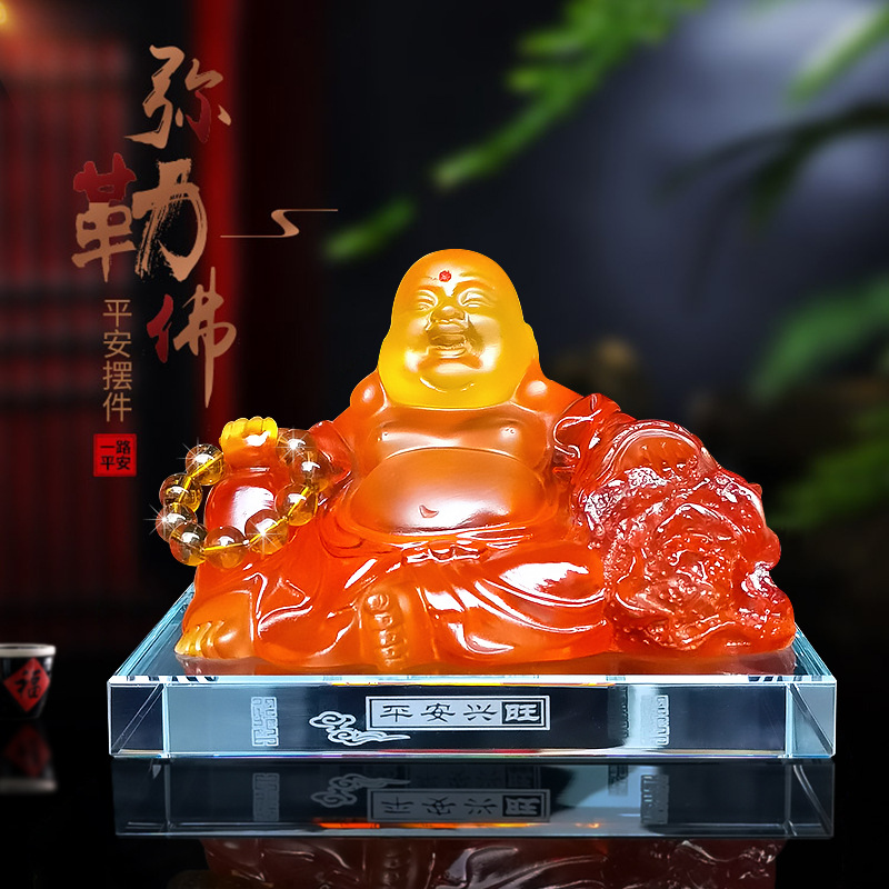 자동차 장식품 유리 불상 미륵불 행운과 안전 번영 자동차용 크리스탈 향수 받침대 자동차 장식품 유리스토어 가기