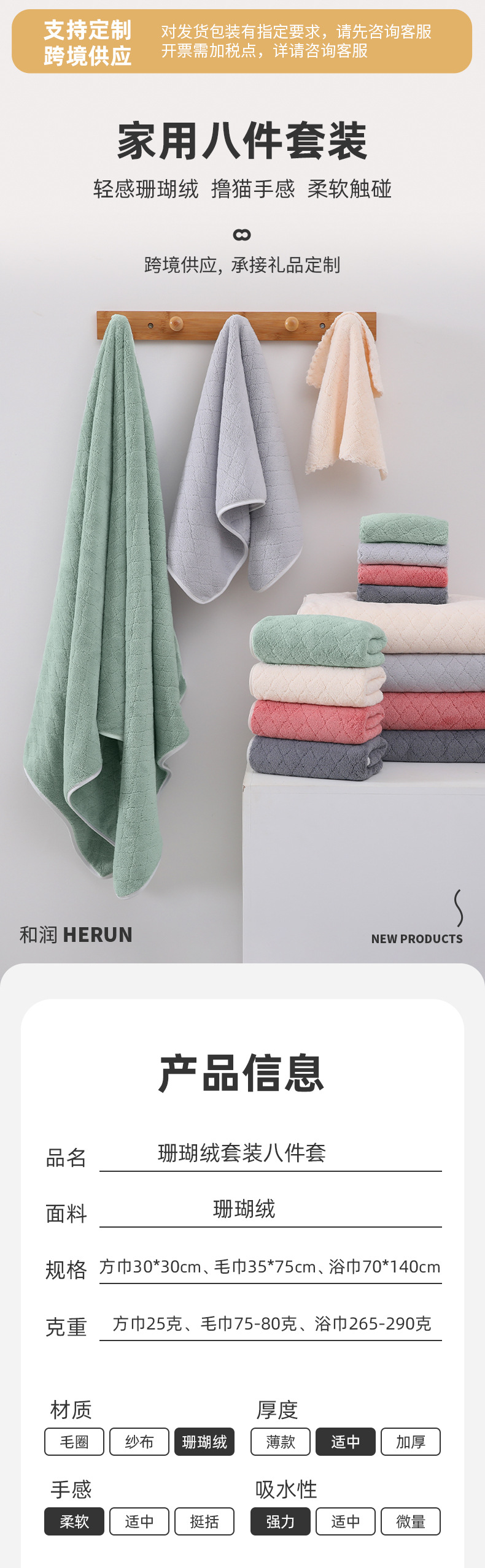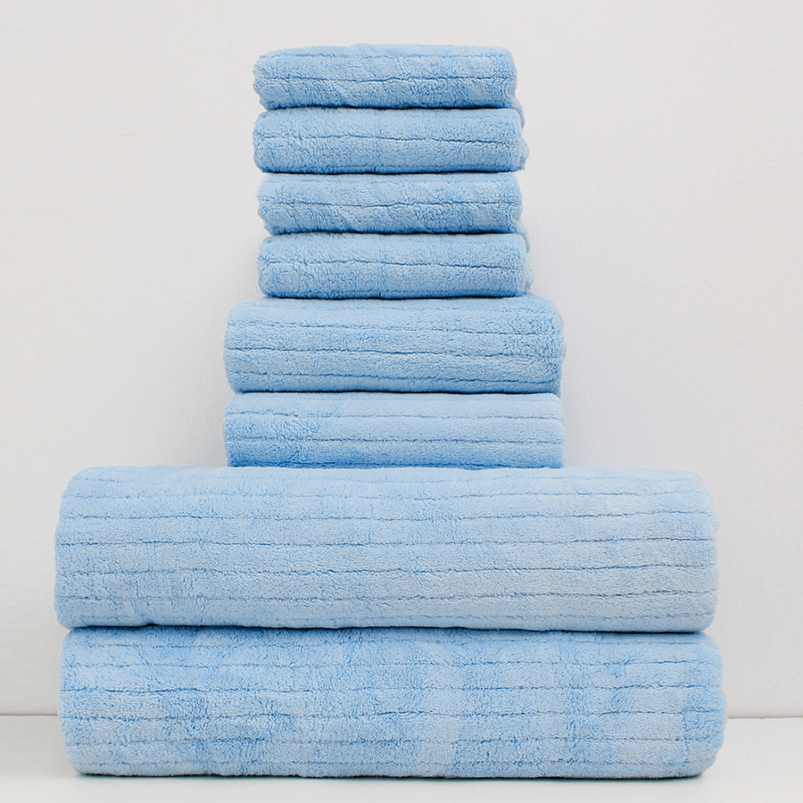 산호 벨벳 사각 수건, 목욕 수건, 일반 가정용 목욕 및 세안 흡수성 부드러운 가정용 세트 8종 세트